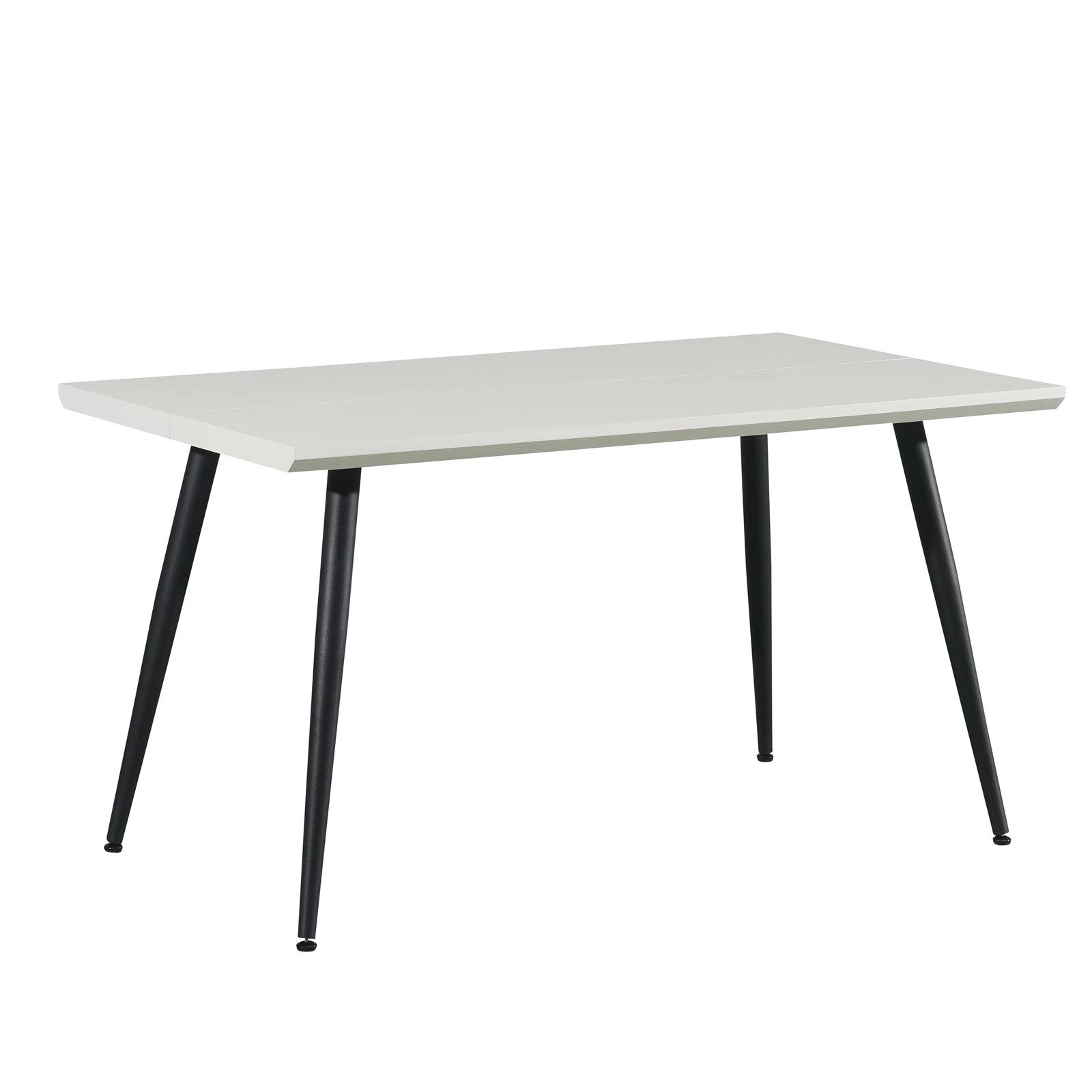 Mit diesem besonderen Esstisch holen Sie sich einen echten Hingucker nach Hause. Die Tischplatte ist aus MDF in verschiedenen Farben. Das Gestell ist in mattem Schwarz. Maße: (B/H/T) 80 x 76 x 140 cm, Stärke Tischplatte: 3,8 cm, Tischbein Ø 5 cm, Belastbar bis 50 kg, Material: Tischplatte MDF, Tischbeine pulverbeschichtetes Metall