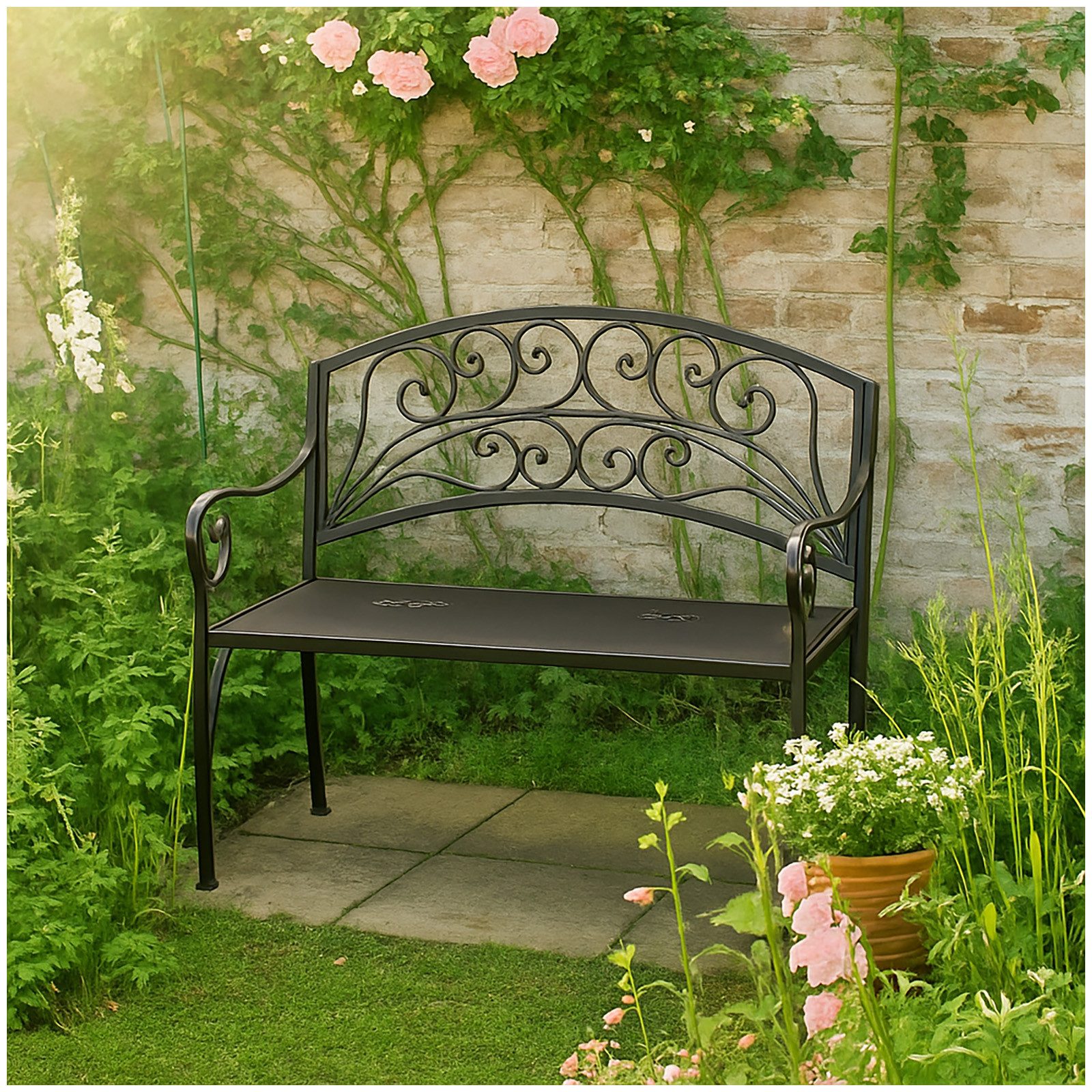 Die nostalgische Gartenbank von HTI-Living ist die perfekte Ergänzung für Ihren Außenbereich. Mit einer maximalen Gewichtskapazität von 200 kg bietet sie Platz für bis zu 2 Erwachsene. Die Bank aus Metall überzeugt mit ihrem charmanten Design und einer Sitzhöhe von 43,5 cm für bequemes Sitzen. Mit einer Breite von 107 cm und einer Höhe von 94 cm bietet die Gartenbank ausreichend Platz und Komfort für gemütliche Stunden im Garten oder auf der Terrasse. Die Montage ist erforderlich. Gönnen Sie sich mit der Gartenbank eine stilvolle Sitzgelegenheit im Freien. Maße: B/H/T 107 x 94 x 52 cm, Sitzhöhe 43,5 cm, Sitztiefe 43,5 cm, belastbar bis 200 kg, Material: Metall in Rostoptik