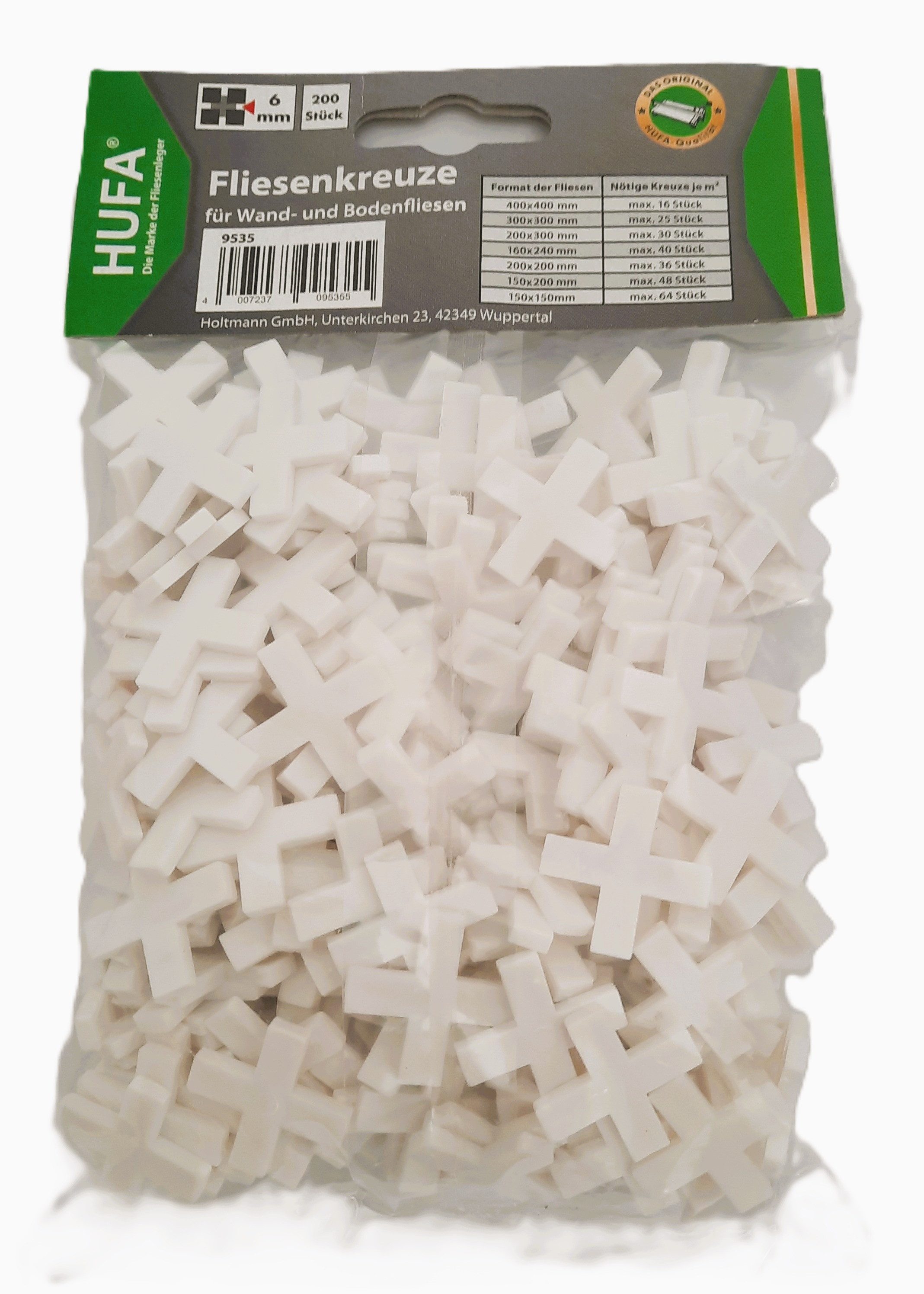 Hufa Fliesen Kunststoffkreuze 6mm, 200 Stück im Beutel, Farbe: weiß, zum Verlegen von Fliesen, Platten, Mosaik etc. Die Marke der Fliesenleger!