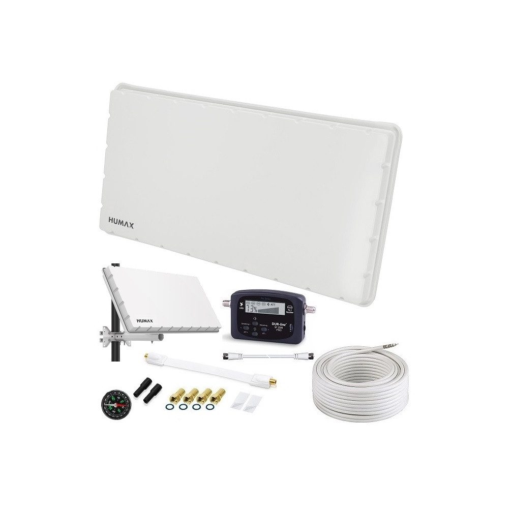 HUMAX Flat H39D SAT Flachantenne (für 1 Teilnehmer, mit Single-LNB) - SAT Antenne flach mit Halterung Wand oder Mast, ersetzt SAT Schüssel 60 cm, Weiß