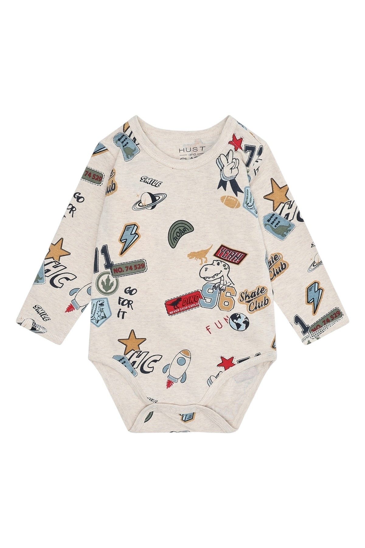 Besondere Merkmale | Hust & Claire Baby Body „Buster Badges“ Langarm, Allover-Print |