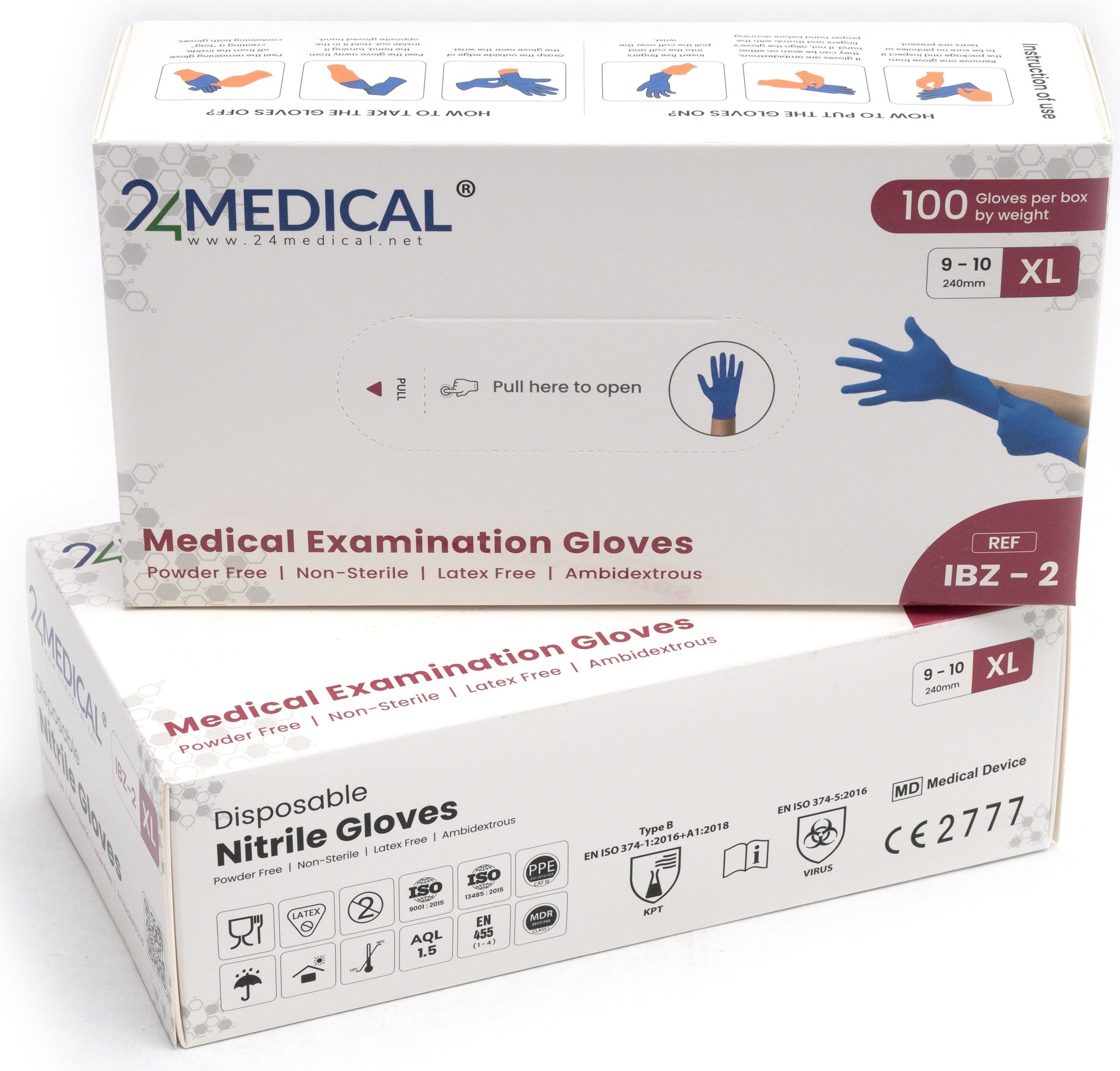 IBZ-2-BLUE sind blaue Nitrilhandschuhe, die in handspezifischen Größen von Small, Medium, Large und Extra Large erhältlich sind.