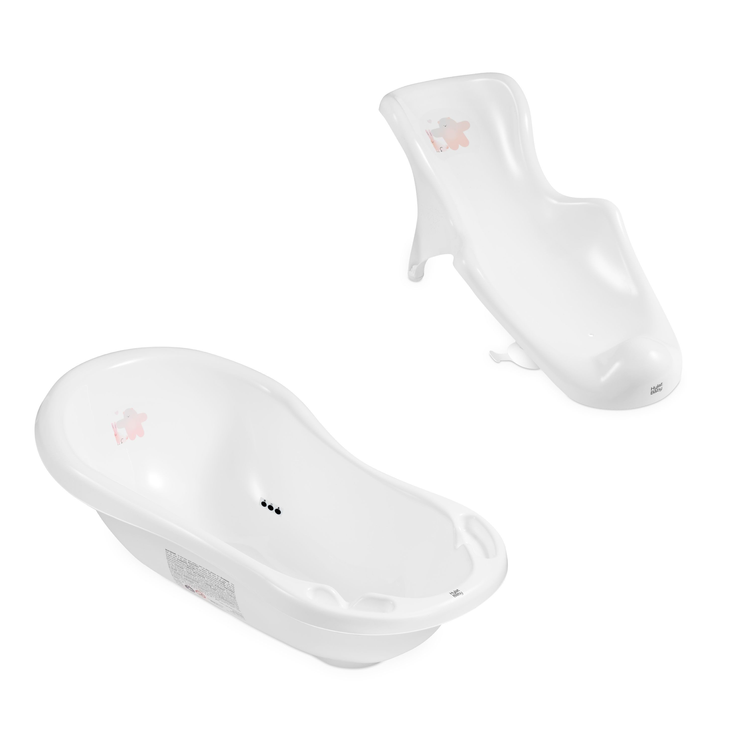 Babybadewanne mit Ständer + Abfluss + Badewannensitz ist ein komplettes Set. Du musst die einzelnen Teile nicht separat kaufen, denn du hast bereits alles zusammen in derselben Farbe und im selben Design - für den Anfang und für die Zeit danach!