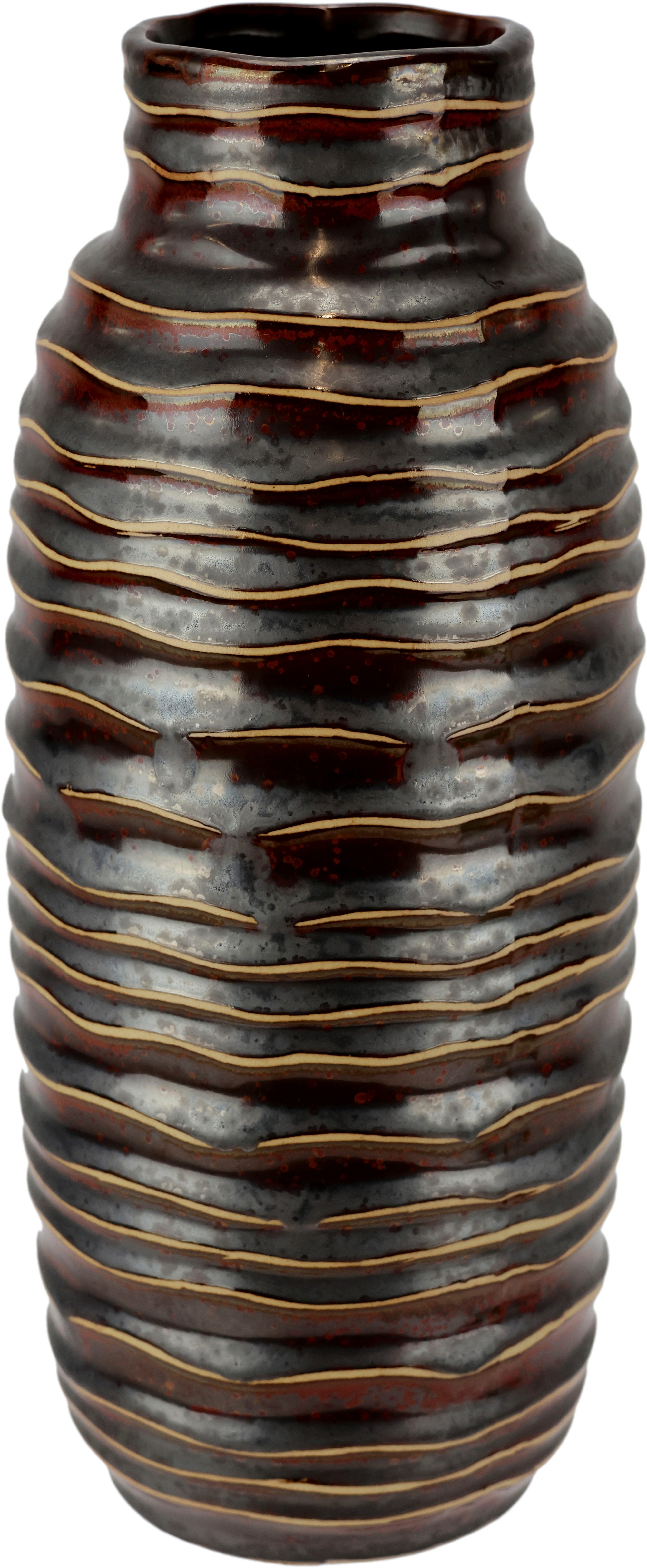 Keramikvase mit stilvoller Riffelstruktur in warmem Braun
