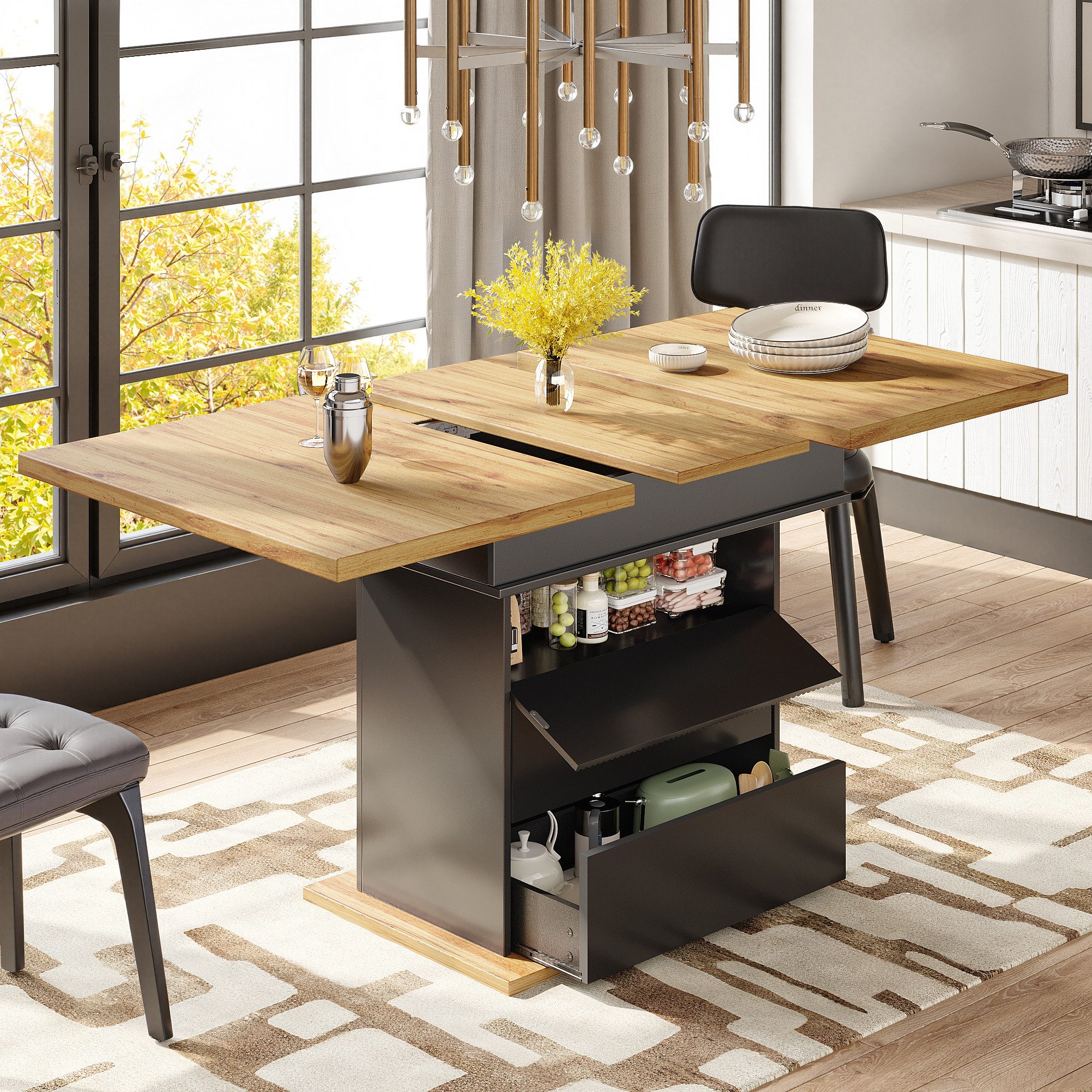 Beidseitig ausziehbar mit Erweiterungsplatte (110–140 cm Breite)