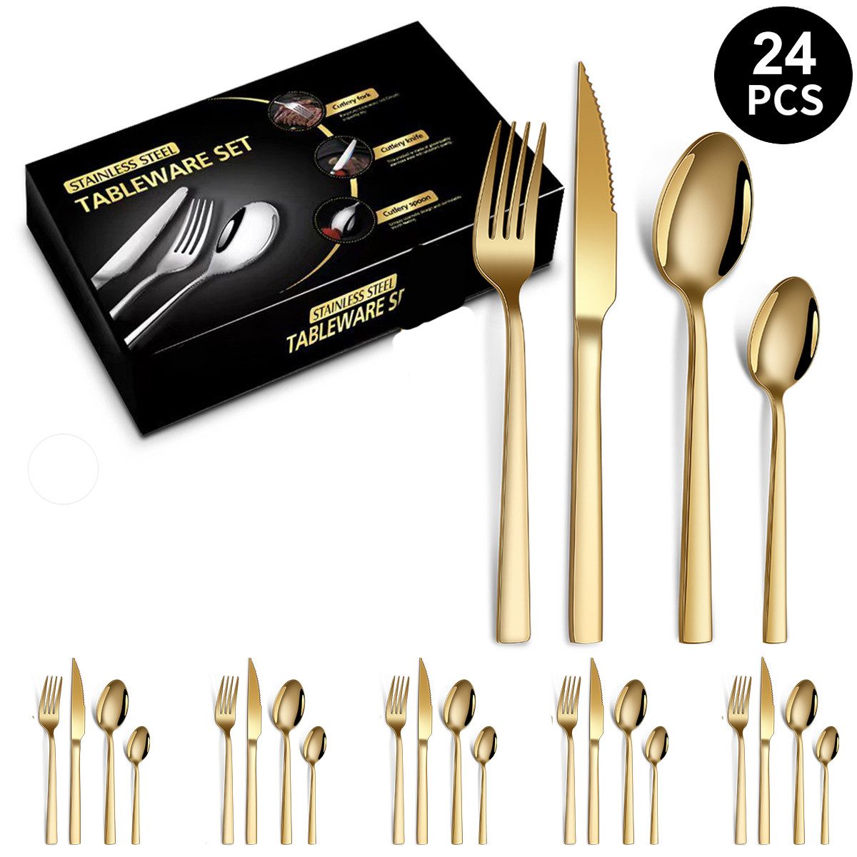 30 Stück Besteck-Sets für sechs Personen enthalten: