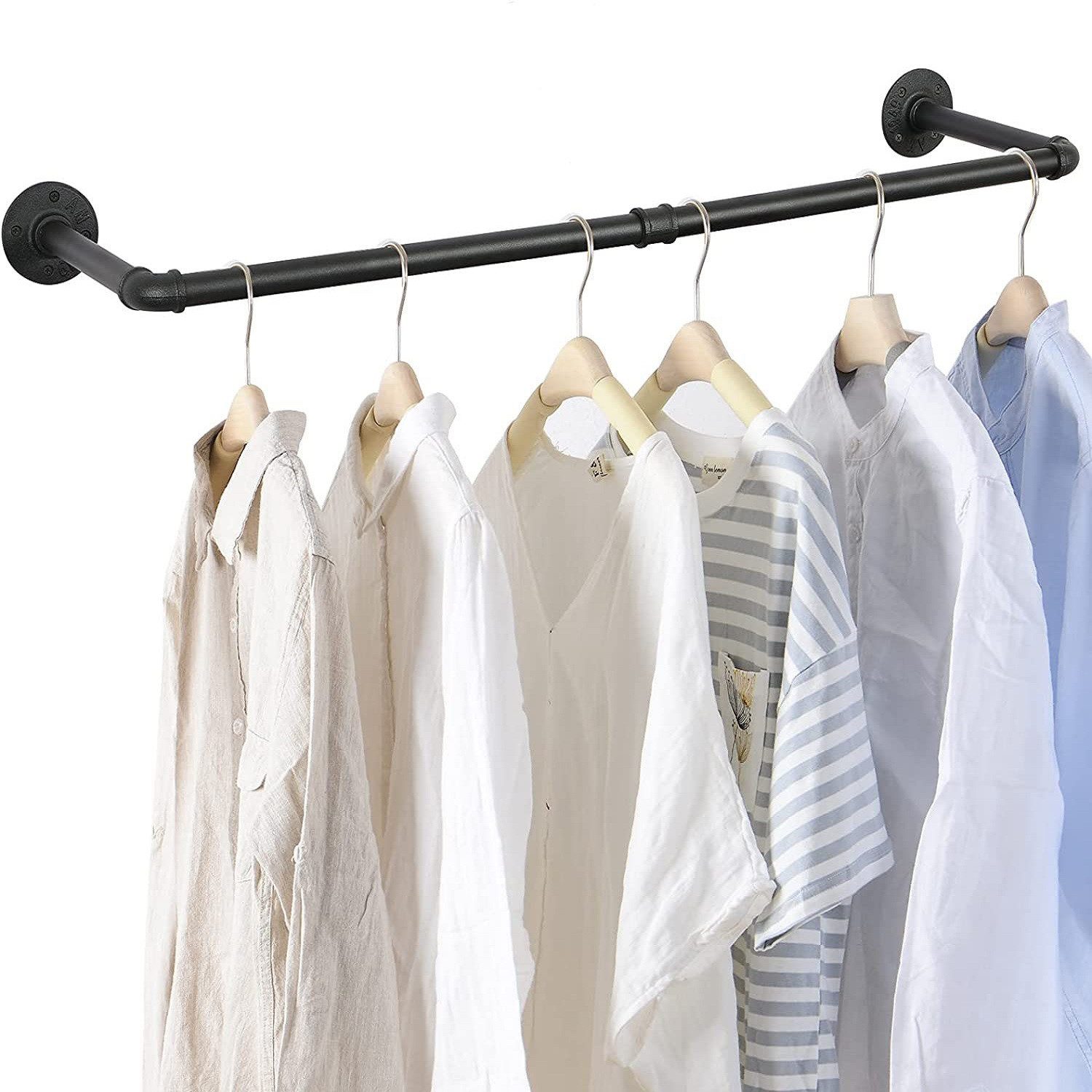 Industrieller Stil Kleiderstange Der Abstand zwischen Wand und Schiene beträgt 25 cm, was für eine große Art von Kleidern und Kleiderbügeln ausreichend ist. Mit diesem Abstand sparen Sie Platz und räumen Ihre Kleidung problemlos auf. Vintage-Design, geeignet für Heimtextilien und praktisch zum Aufhängen Ihrer Kleidung. Lagern Sie Ihre Kleidung ohne einen Schrank, vermeiden Sie die Kümmer über die Falten und finden Sie sie leicht. Sie können den wandmontage Kleiderstange problemlos in wenigen Minuten installieren.