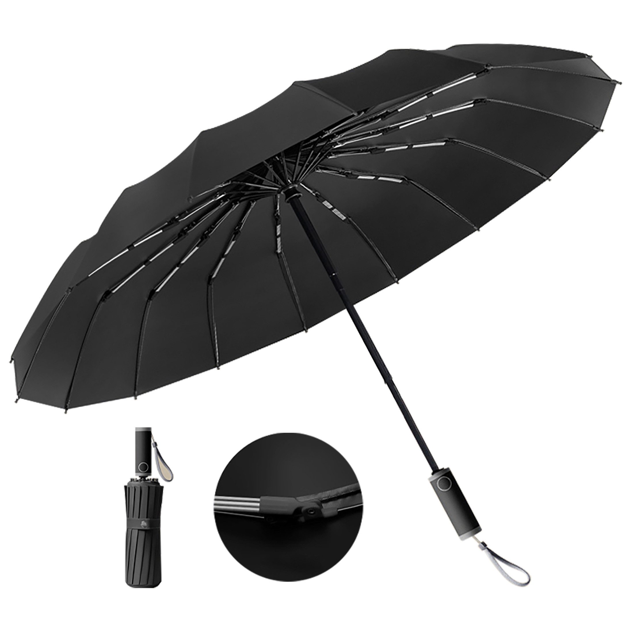 Regenschirm mit automatischem Bedienungssystem, das sich mit nur einem Knopfdruck automatisch öffnet und schließt. Daher ist der Regenschirm schnell und einfach mit einer Hand zu handhaben, wenn Ihre Hände beschäftigt sind.