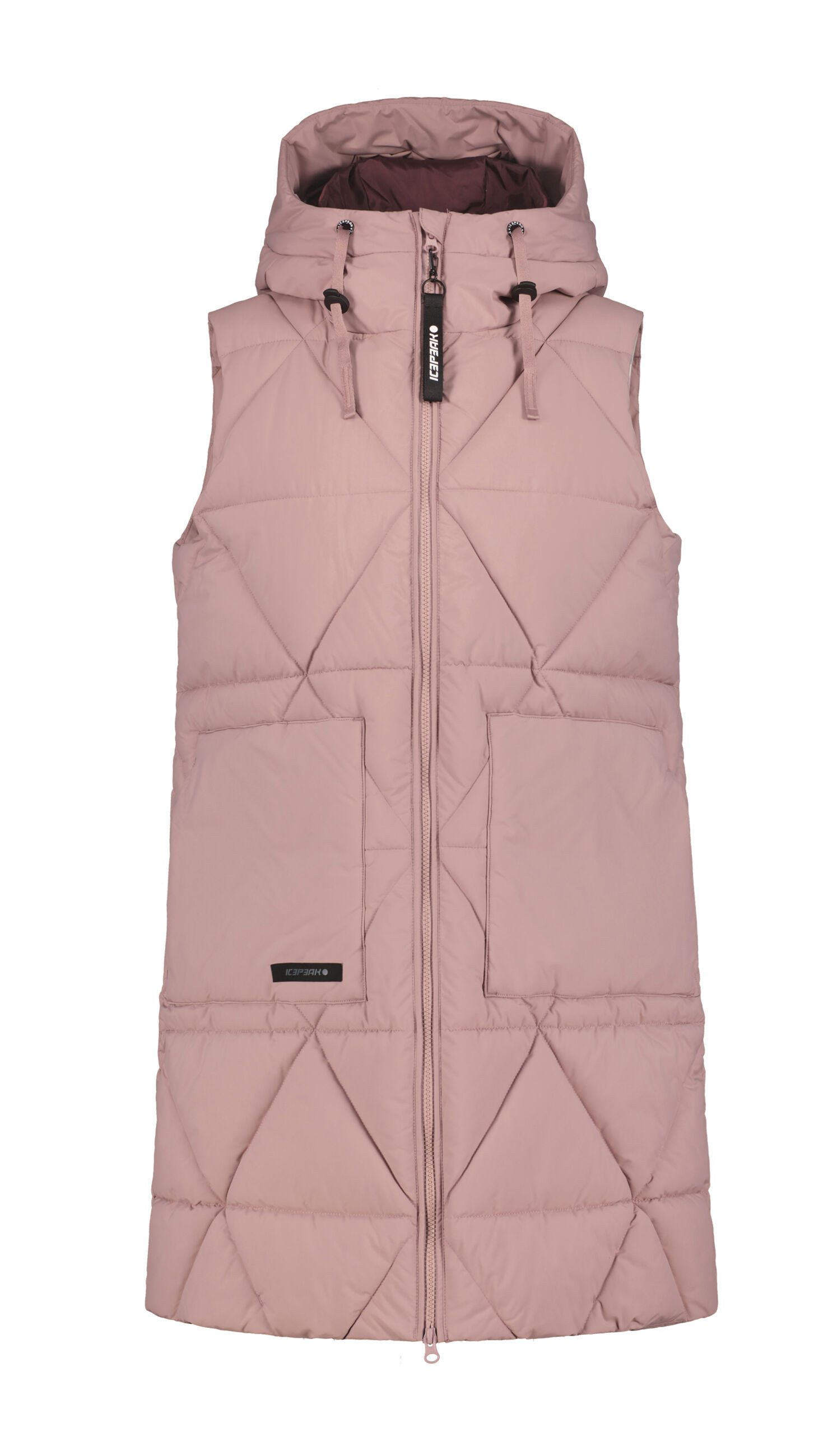 Icepeak Weste in daunenoptik für damen. Gerader Schnitt. Kapuze mit Kordelzügen. Feste Kapuze. Zwei Reißverschlusstaschen vorne. Zwei-Wege-Reißverschluss vorne. Logo-Label. Enthält REPREVE®-Fasern, die zu 100 % aus recycelten Materialien bestehen, unter anderem auch aus gebrauchten Plastikflaschen. Funktionalität und Komfort wurde besondere Beachtung beim Design-Prozess dieses A.W.S. ACTIVE-Produkts geschenkt, weswegen es für intensive wie auch für entspannte Aktivitäten geeignet ist. Die Wattierung besteht aus Daunenimitat, das eine exzellente Wärmeisolierung im Verhältnis zu seinem geringen Gewicht bietet. Hergestellt aus einem 2-Lagenmaterial, bei dem eine wasserdichte Membran mit einem funktionellen Material verbunden worden ist. Die Gewebeoberfläche ist wasserabweisend imprägniert. Das winddichte Material bietet optimalen Windschutz und Wärme. Warm gefüttert.