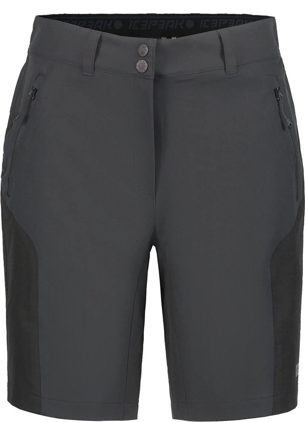 Die ICEPEAK BASTROP in Anthrazit sind vielseitige Shorts für aktive Frauen. Mit ihrem wasserabweisenden 4-Wege-Stretchmaterial und der A.W.S. ACTIVE-Technologie bieten sie optimale Bewegungsfreiheit und hohen Tragekomfort – ideal für Wanderungen, Reisen oder entspannte Sommertage.