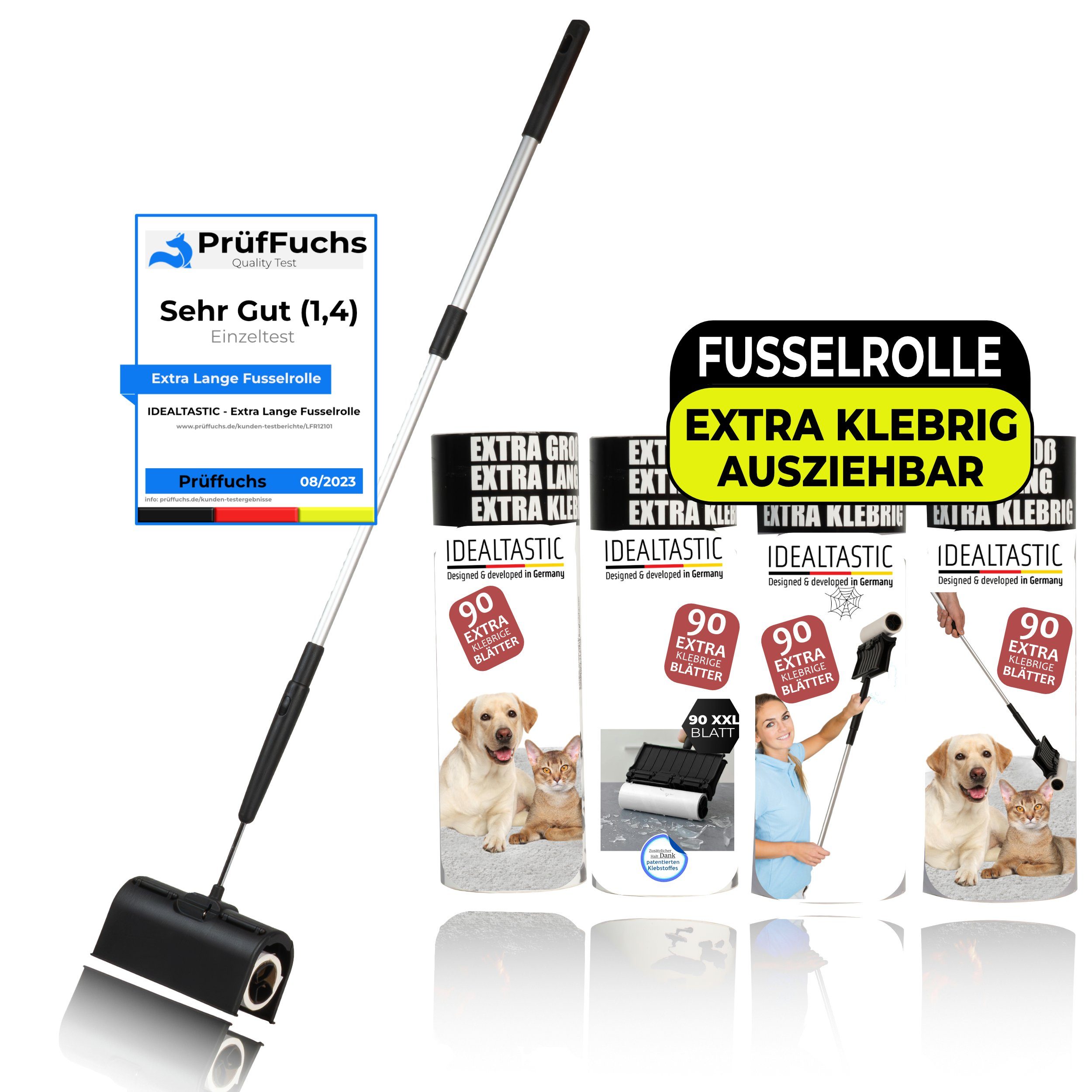 Ausstattung | Ausziehbare XXL Fusselrolle Fusselentferner für Kleidung & Tierhaare 4x90 Blatt Rollen Große Kleberolle |