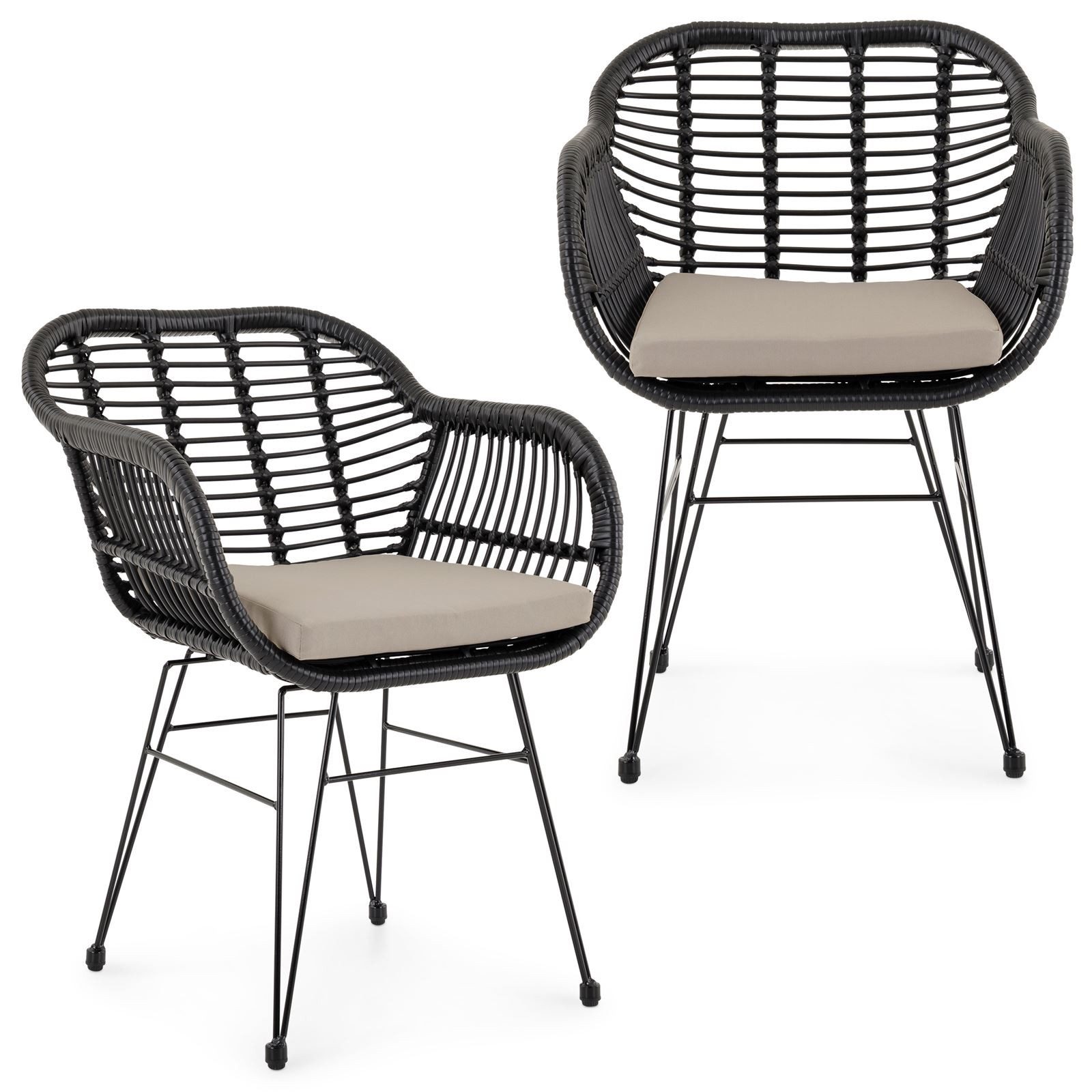 Die In & Ourdoor Stühle im 2er Set bietet Ihnen mit ihrer Sitzschale in Rattan-Optik ein angenehmes Sitzgefühl. Mit unserem Stuhl erhalten Sie ein passendes, wasserabweisendes Sitzkissen, das auch bei leichtem Regen oder Feuchtigkeit bestens geeignet ist. Die Rattanoptik bringt sommerliches Boho Flair in Ihr Esszimmer. Ist der Boden mal uneben, können die Schrauben an den Füßen eingestellt werden und der Stuhl wackelt nicht mehr. Unsere Stühle kann sowohl im Innen- als auch im Außenbereich als Gartensessel oder Balkonstuhl verwendet werden.