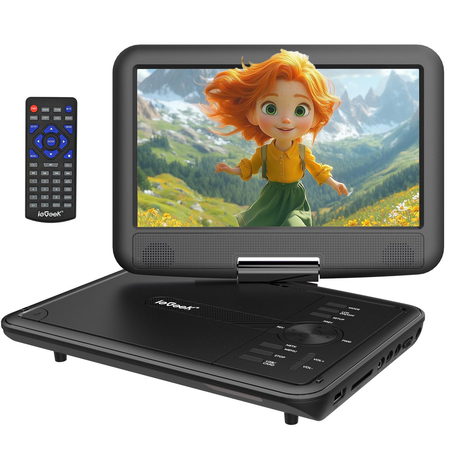 Lieferumfang | 1x ieGeek tragbarer DVD-Player 1x AV-Kabel 1x Fernbedienung 1x Netzteil 1x Autoladegerät 1x Bedienungsanleitung |