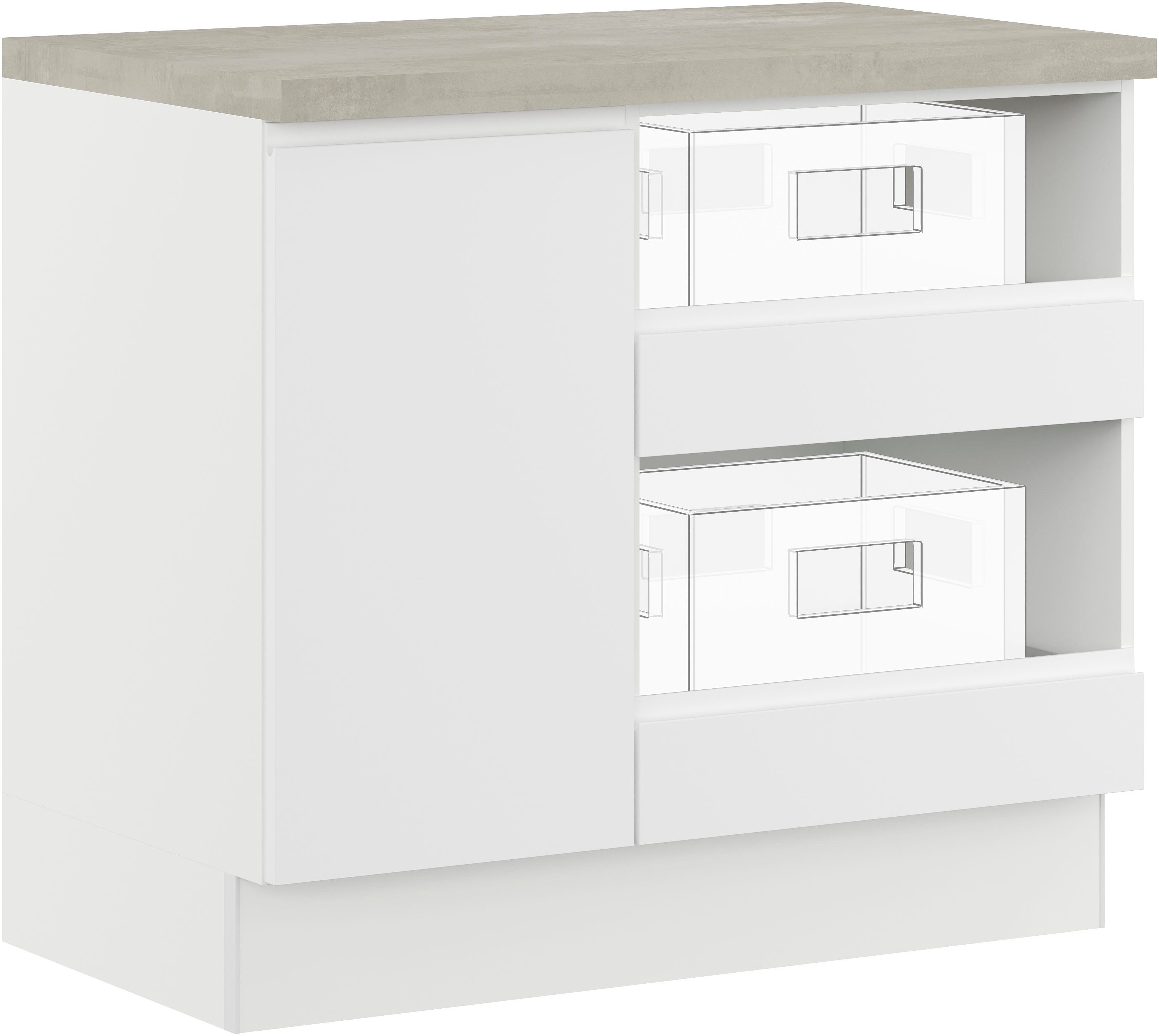 Ausstattung Schrank 2 | 2 Schubkästen Schrank innen in Korpusdekor. Schrank ohne Griffe! Unterschrank für Getränkekisten |