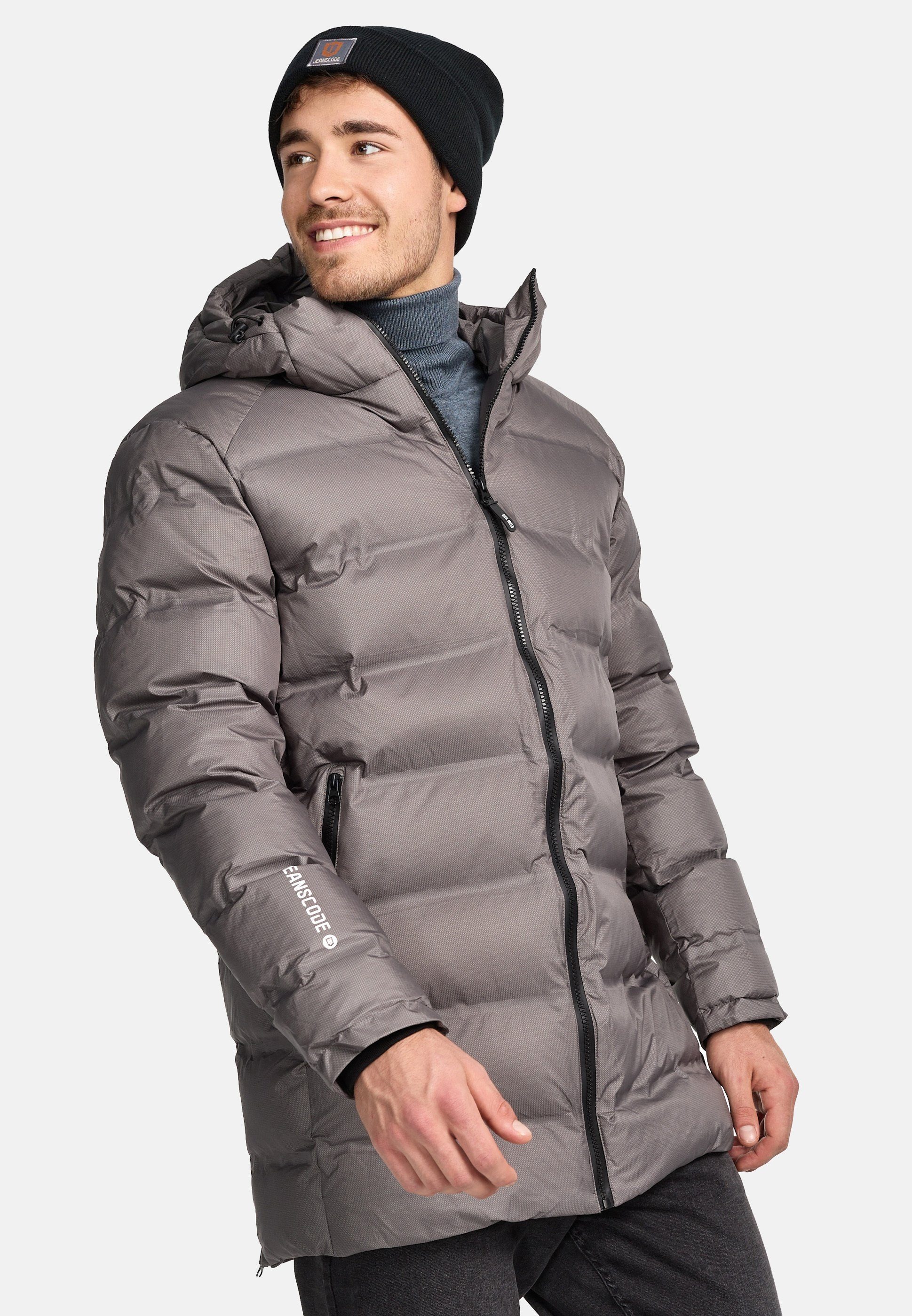 • DETAILS & HIGHLIGHTS: mittelschwer gefüttert, moderne Steppung, taillierter Schnitt, hoch abschließende Kapuze, Kinnschutz und Gummizug, zwei seitliche Eingriffstaschen