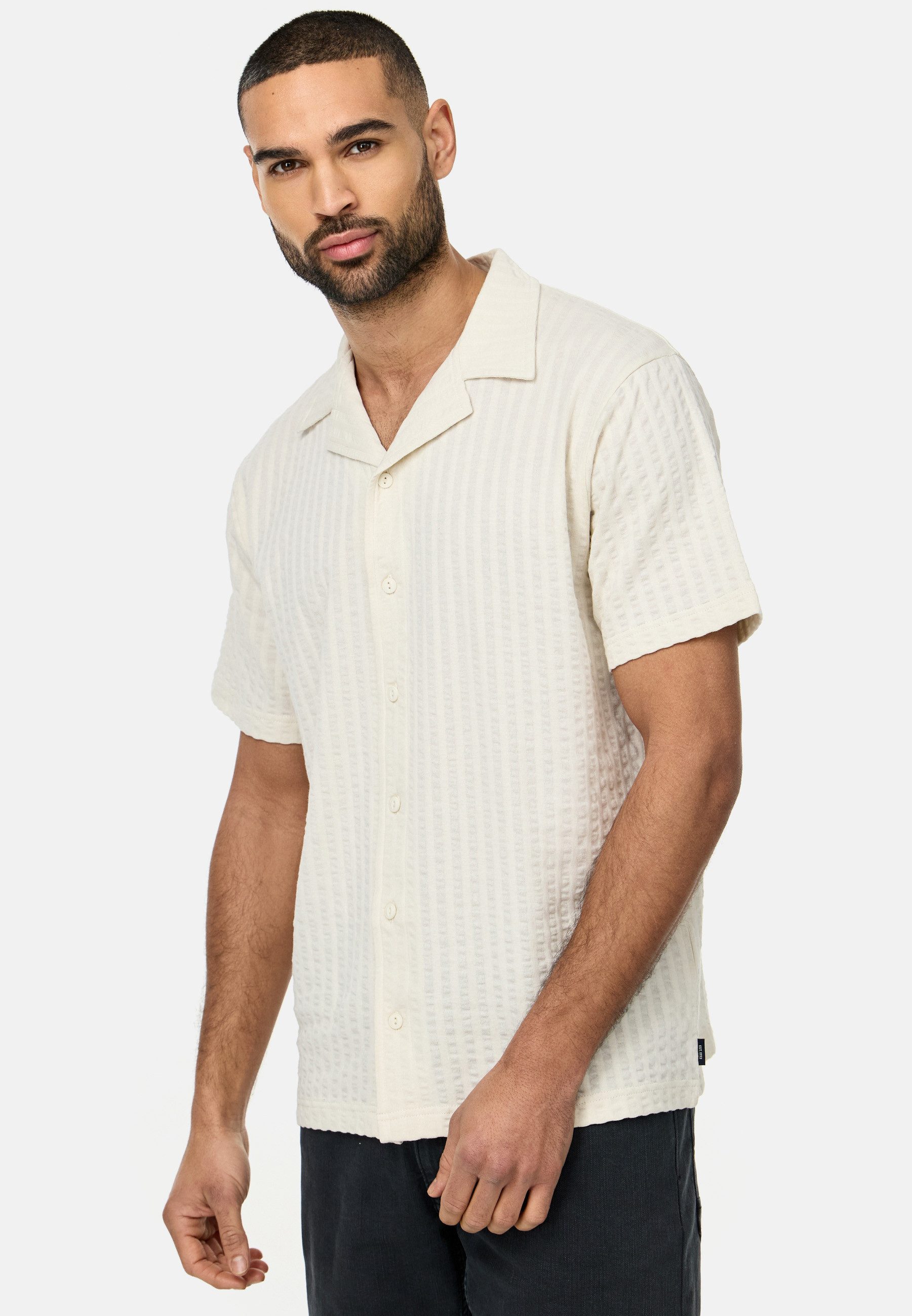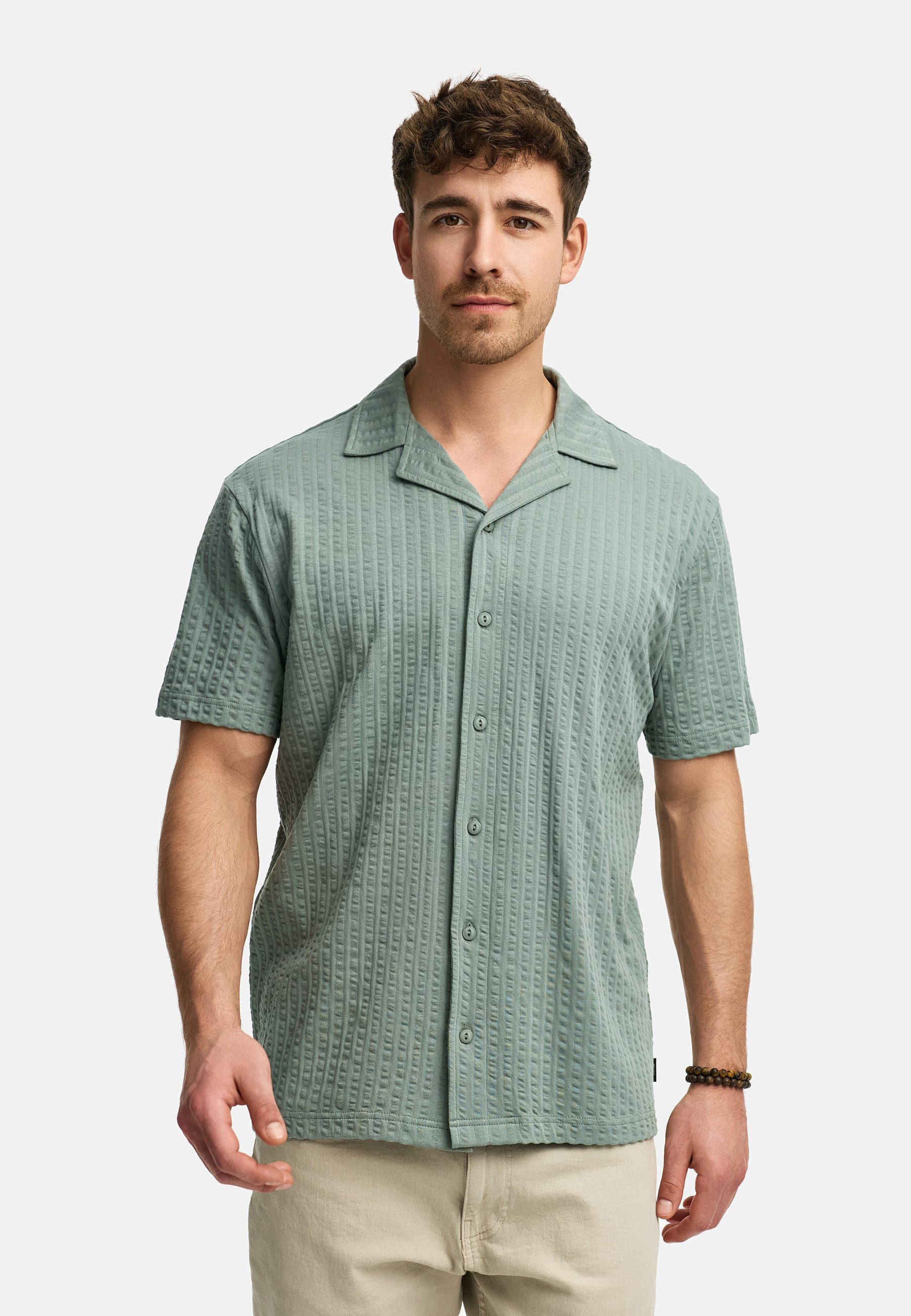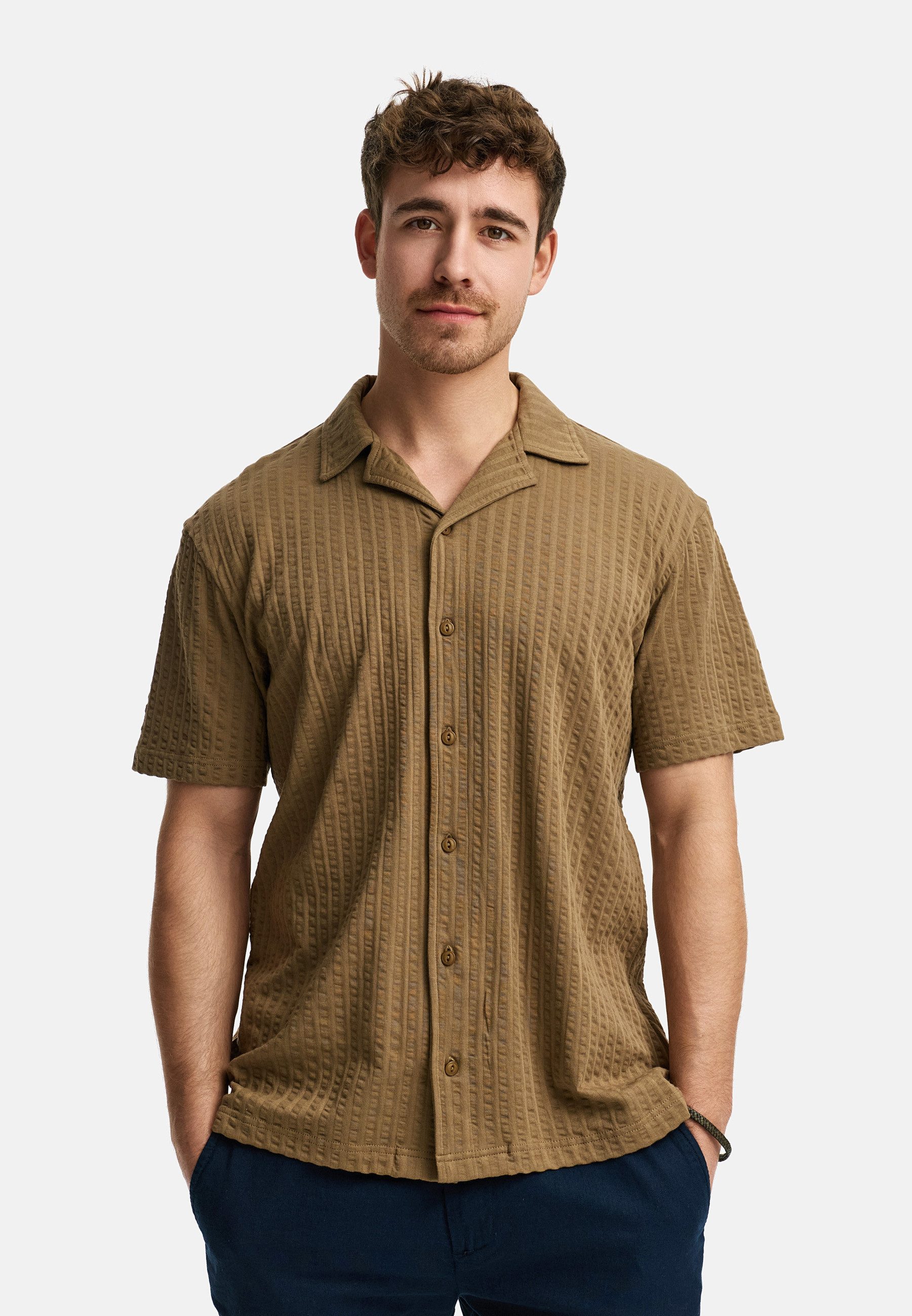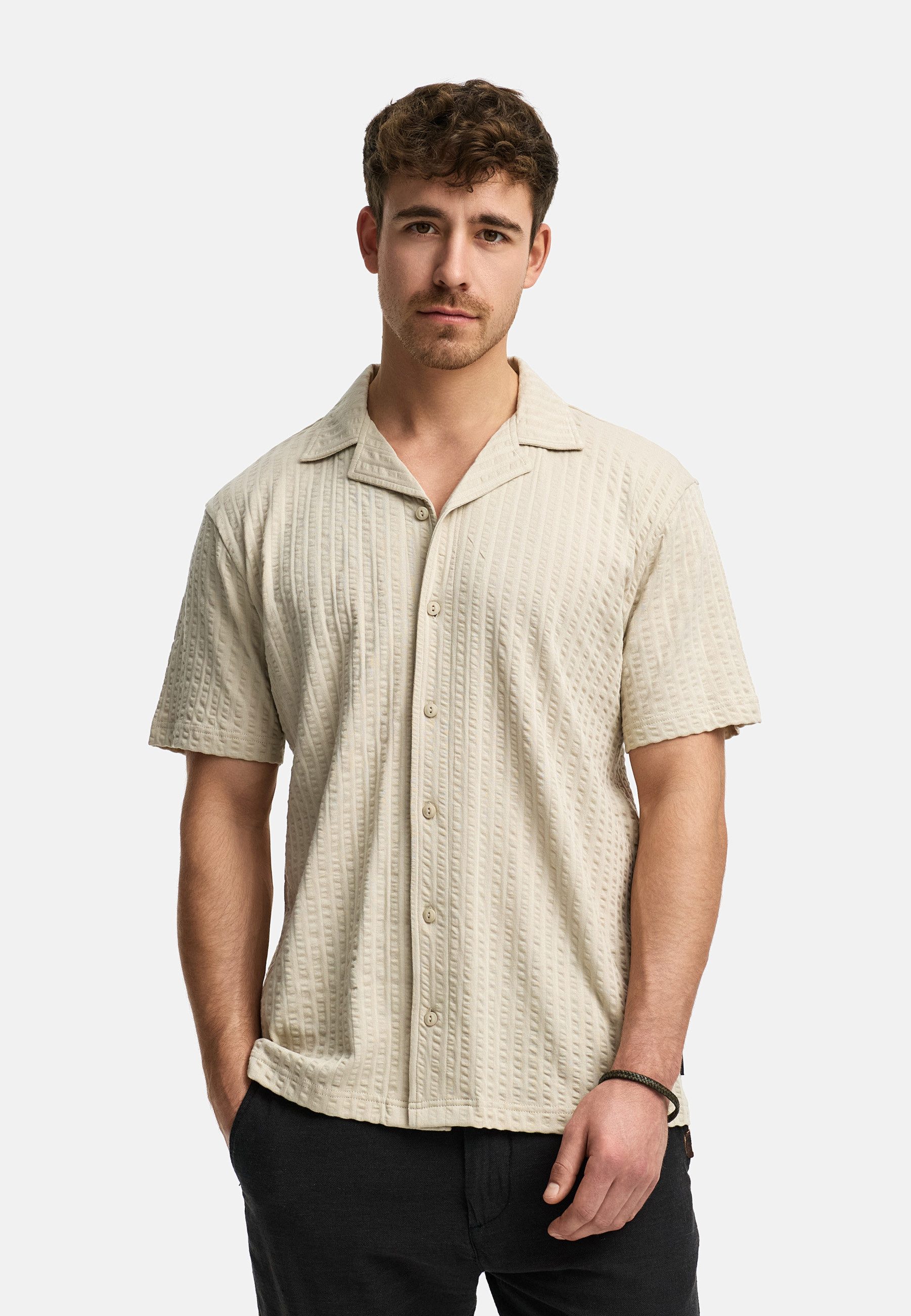 Dieses kurzärmelige Hemd kombiniert lässigen Stil mit besonderer Textur. Es besteht aus einem leichten, atmungsaktiven Material mit einer dezent geprägten Struktur in vertikalem Streifenmuster, das dem Look Tiefe und Charakter verleiht. Der klassische Reverskragen sorgt für einen entspannten Touch, während die durchgehende Knopfleiste eine flexible Tragweise ermöglicht. Die gerade Passform bietet hohen Tragekomfort – ideal für warme Tage und stilvolle Freizeit-Outfits.