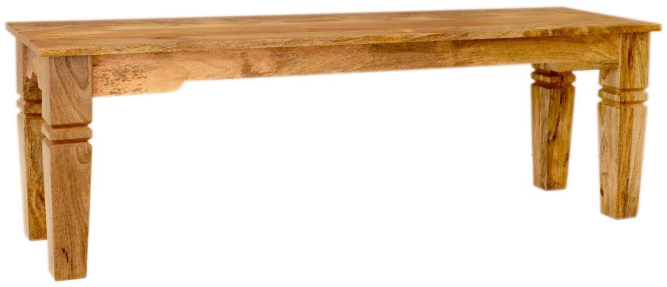 Die Bank Guru 140x40 aus hochwertigem Mango-Massivholz vereint Funktionalität und ästhetisches Design. Mit einer Breite von 140 cm, einer Höhe von 45 cm und einer Tiefe von 40 cm bietet sie ausreichend Sitzfläche, um in verschiedenen Wohnräumen eingesetzt zu werden. Das robuste Material aus Mango-Massivholz sorgt nicht nur für Langlebigkeit, sondern verleiht der Bank auch einen natürlichen, warmen Look, der in jedes Interieur integriert werden kann. Mit einem Gewicht von 17 kg ist die Bank leicht zu bewegen und dennoch stabil genug, um als praktisches Möbelstück im Flur, Wohnzimmer oder Essbereich zu dienen. Dieses Möbelstück wird nicht nur durch seine Funktionalität, sondern auch durch seine ansprechende Handwerkskunst und das hochwertige Holz zur wertvollen Bereicherung Ihres Zuhauses.