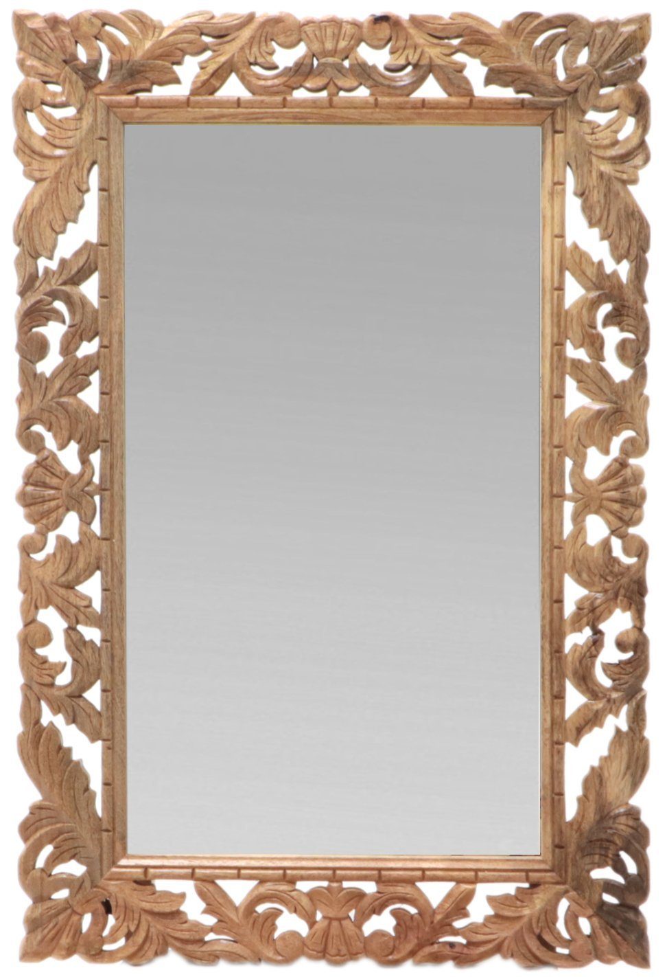 Der geschnitzte Spiegel ist aus hochwertigem Mango-Massivholz hergestellt. Sie können sich die Wandspiegel, die wir auf Lager haben, vor Ort ansehen, oder Sie bestellen auftragsspezifisch. Indisches Mango-Massivholz.