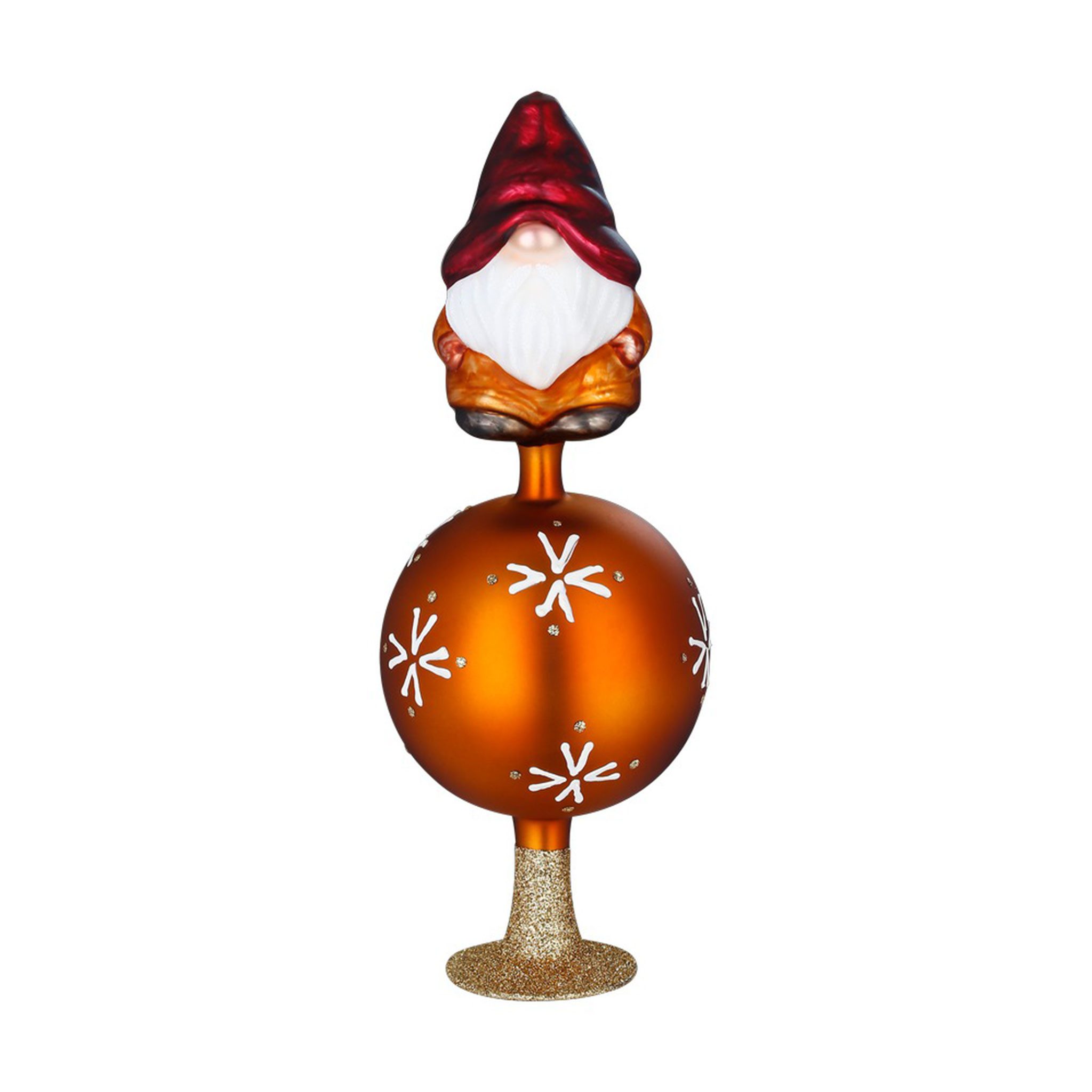 PRODUKT: Weihnachtsspitze "Wichtelzauber" / GRÖSSE (DxH): ca. 8 x 20,5 cm / MATERIAL: Glas / INHALT: 1 Spitze / FARBTON: braun – goldbraun – rot – weiß