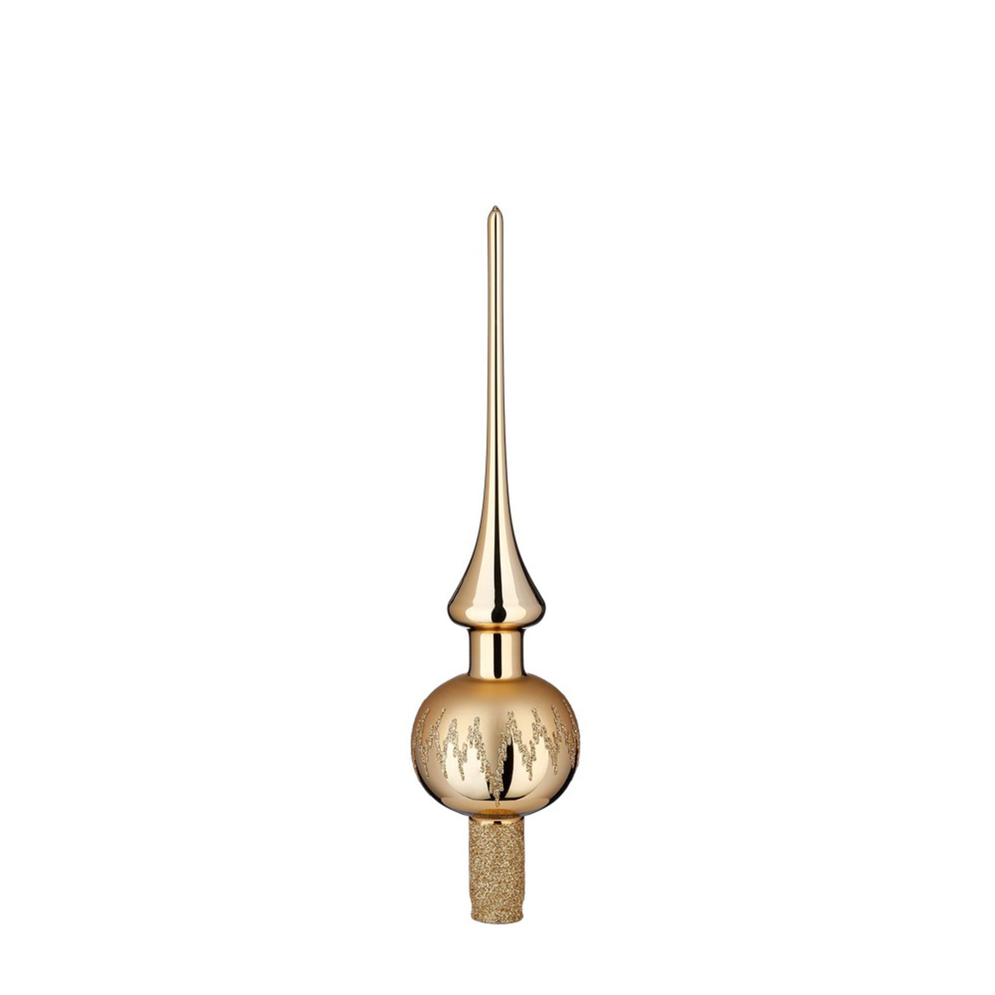 PRODUKT: Weihnachtsspitze "Festtagsfreude" Glanz / HÖHE: ca. 30 cm / MATERIAL: Glas / INHALT: 1 Spitze / FARBTON: gold - helles antikgold - hellgold - brokatgold - goldfarben