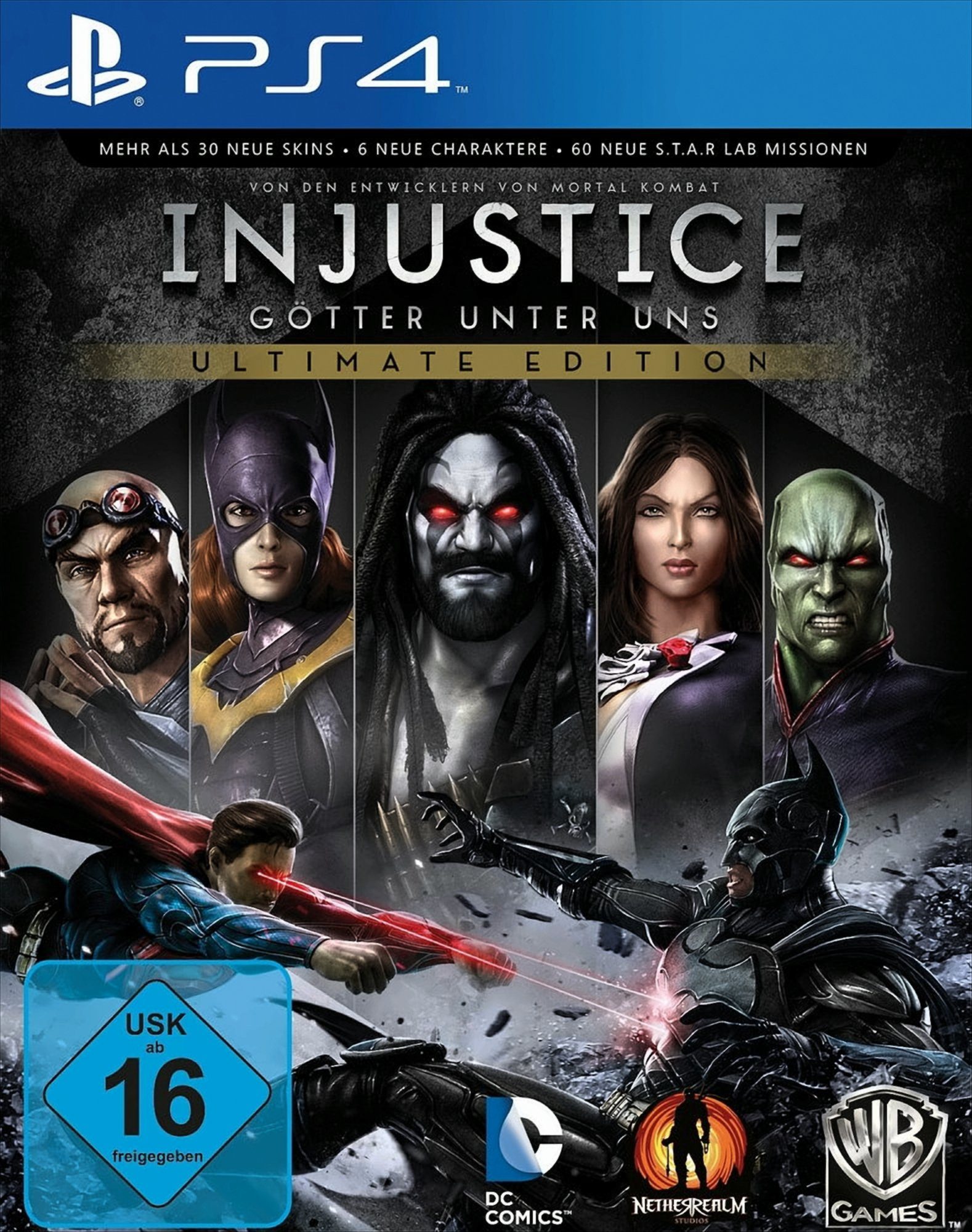 Spielbeschreibung | Was wäre, wenn unsere größten Helden zu unserer größten Bedrohung würden?Mit „Injustice: Götter unter uns“ kommt frischer Wind in das Genre der Prügelspiele. Verantwortlich dafür sind die NetherRealm Studios, die Entwickler des ultimativen Prügelspiels Mortal Kombat. Das neueste Werk des preisgekrönten Studios erzählt eine tiefgründige und originelle Geschichte rund um die Kultfiguren der DC Comics, wie z.B. Batman, Cyborg, The Flash, Harley Quinn, Nightwing, Solomon Grundy, Superman oder Wonder Woman. Helden und Schurken treten in spektakulären Kämpfen epischen Ausmaßes gegeneinander an, in einer Welt, in der die Grenzen zwischen Gut und Böse völlig verschwimmen.Mächtige Kämpfer aus den DC Comics!Stelle dich epischen Duellen mit einer gewaltigen Auswahl von Helden und Schurken der DC Comics, darunter Batman, Cyborg, The Flash, Harley Quinn, Nightwing, Solomon Grundy, Superman und Wonder Woman.Beherrsche gottgleiche Kräfte!Entfessle mit individuellen Moves und mit Hilfe der Umgebung die einzigartigen Superkräfte eines jeden Helden oder Schurken.Kämpfe ohne Limit!Kämpfe dich durch Kampfarenen mit mehreren Ebenen. Schleudere deine Gegner dabei durch Gebäude oder wirf sie von Klippen.Authentische Geschichte angesiedelt im DC Universum!Erlebe eine echte DC Comics Story, entwickelt in Zusammenarbeit zwischen den NetherRealm Studios, DC Entertainment und den bekannten Autoren Justin Gray und Jimmy Palmiotti. Die Spieler erleben die Kämpfe an legendären Orten, die sie bereits aus den DC Comics kennen.Spektakuläres Prügelspiel in dem die Welt selbst eine Waffe ist!Erlebe epische Duelle gewaltigen Ausmaßes. Die Spieler kontrollieren in zerstörbaren und interaktiven Umgebungen die mächtigsten Wesen des ganzen Universums. Zerstöre Teile der Welt und benutze Superkräfte, um Fahrzeuge, Gebäude und vieles mehr in mächtige Waffen zu verwandeln.Features:· Von den Machern von Mortal Kombat· Single- so wie Multiplayermodi· Kämpfe ohne Grenzen: Die Spieler prügeln sich durch Kampfarenen mit mehreren Ebenen und Arealen, indem sie die Gegner z.B. durch Gebäude schleudern oder sie sie von Klippen stoßen· Interagiere mit der Umgebung: verwandle Fahrzeuge, Gebäude und andere Umgebungs-Elemente in mächtige Waffen.· DC-Comic-Superhelden und -Kultschauplätze: Epische Schlachten z.B. in der Bathöhle oder Supermans Festung der Einsamkeit, mit einer riesigen Auswahl an Helden und Schurken, darunter Batman, The Flash, Harley Quinn, Solomon Grundy, Superman und Wonder Woman· Original DC-Comics-Story: Entstanden in Zusammenarbeit zwischen den NetherRealm Studios, DC Entertainment und den bekannten Autoren Justin Gray und Jimmy Palmiotti.Ultimate Edition:· 6 neue spielbare Charaktere· Über 30 neue Skins· 60 neue S.T.A.R.-Labs-MissionenMedienanzahl: 1Features: Mehrstöckige KampfarenenCharaktere des DC-UniversumsIndividuelle MovesSprache/Untertitel: MehrsprachigHandbuch: Ja |