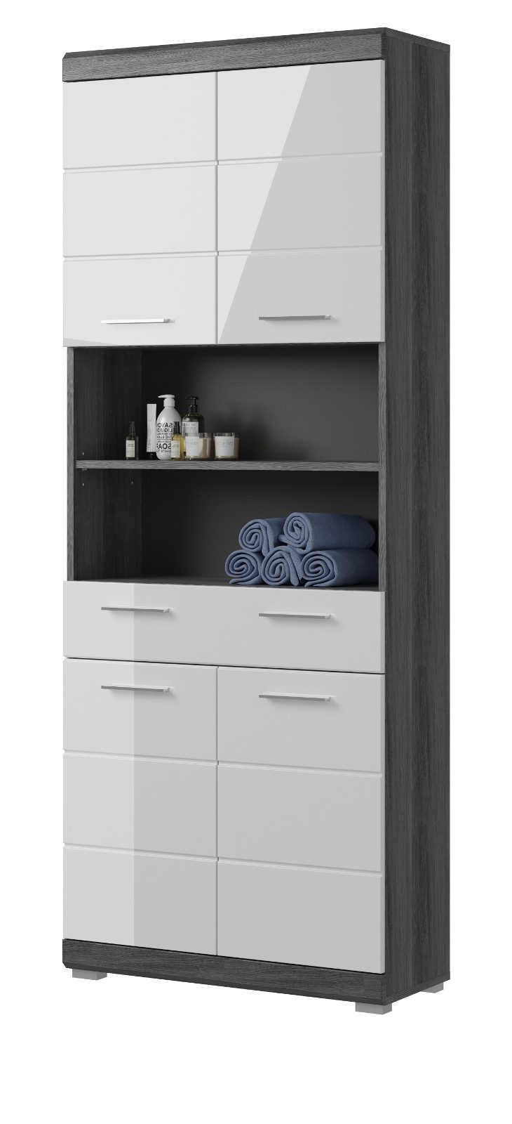 Ausstattung | Schublade mit Vollauszug 4-türig 6 Fächer Hochglanz |