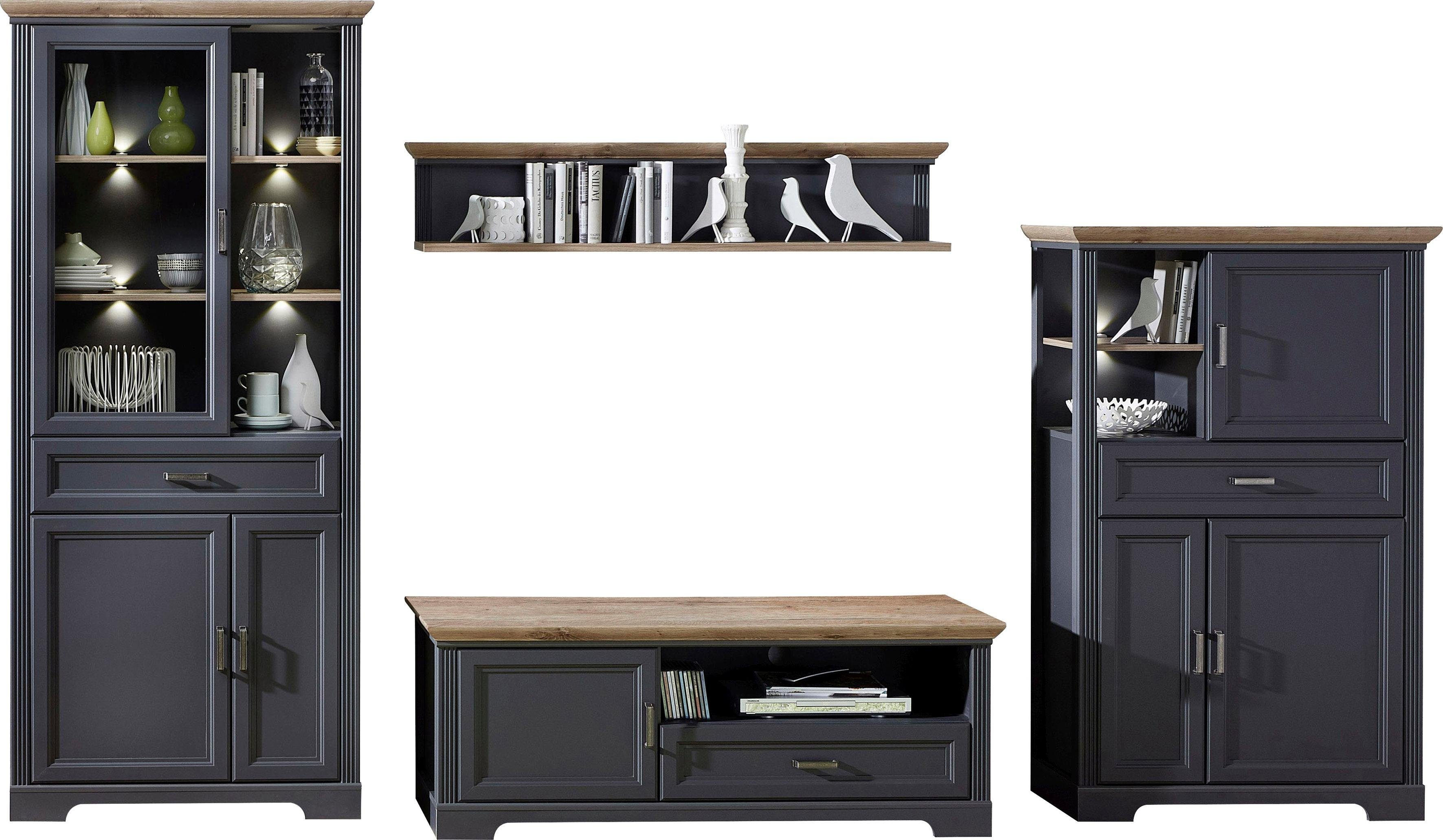 Ausführung | Holzwerkstoff piniefarben-weiß (Korpus)/MDF piniefarben-weiß (Front)/MDF eichefarben (Absetzung) |