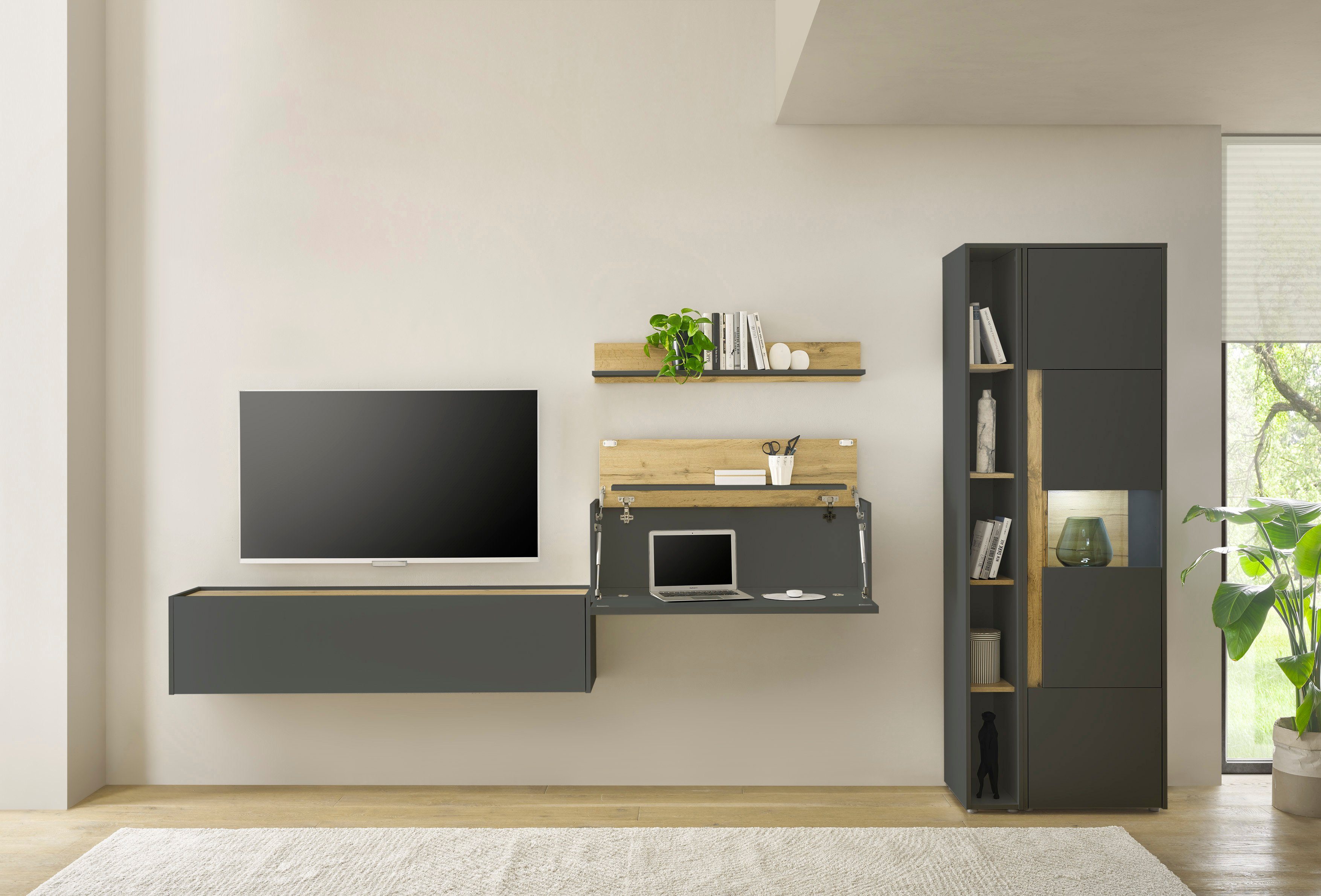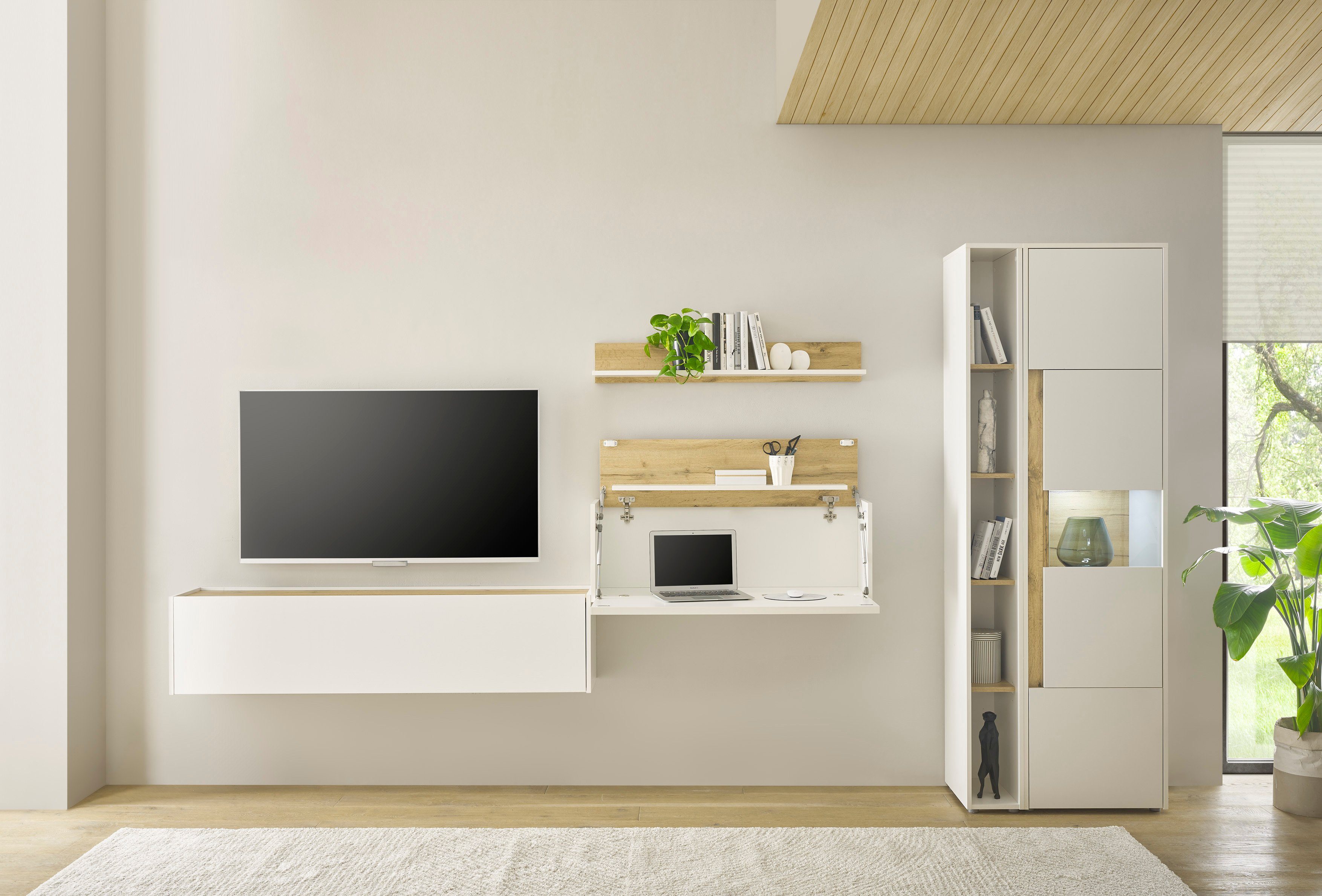 Set beinhaltet | Hängesekretär,Hängeschrank (150),Aktenregal,Vitrine,Wandregal (100) |