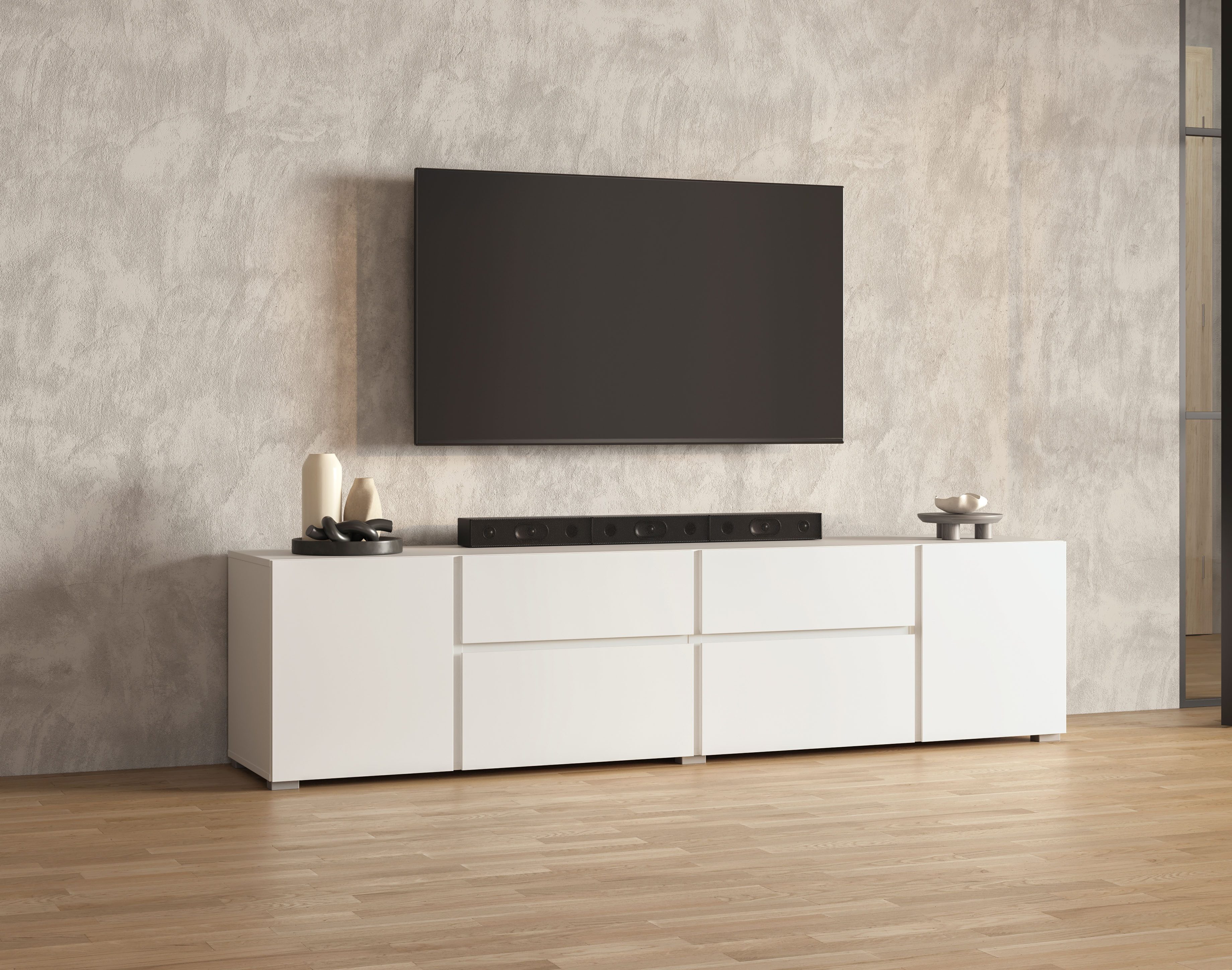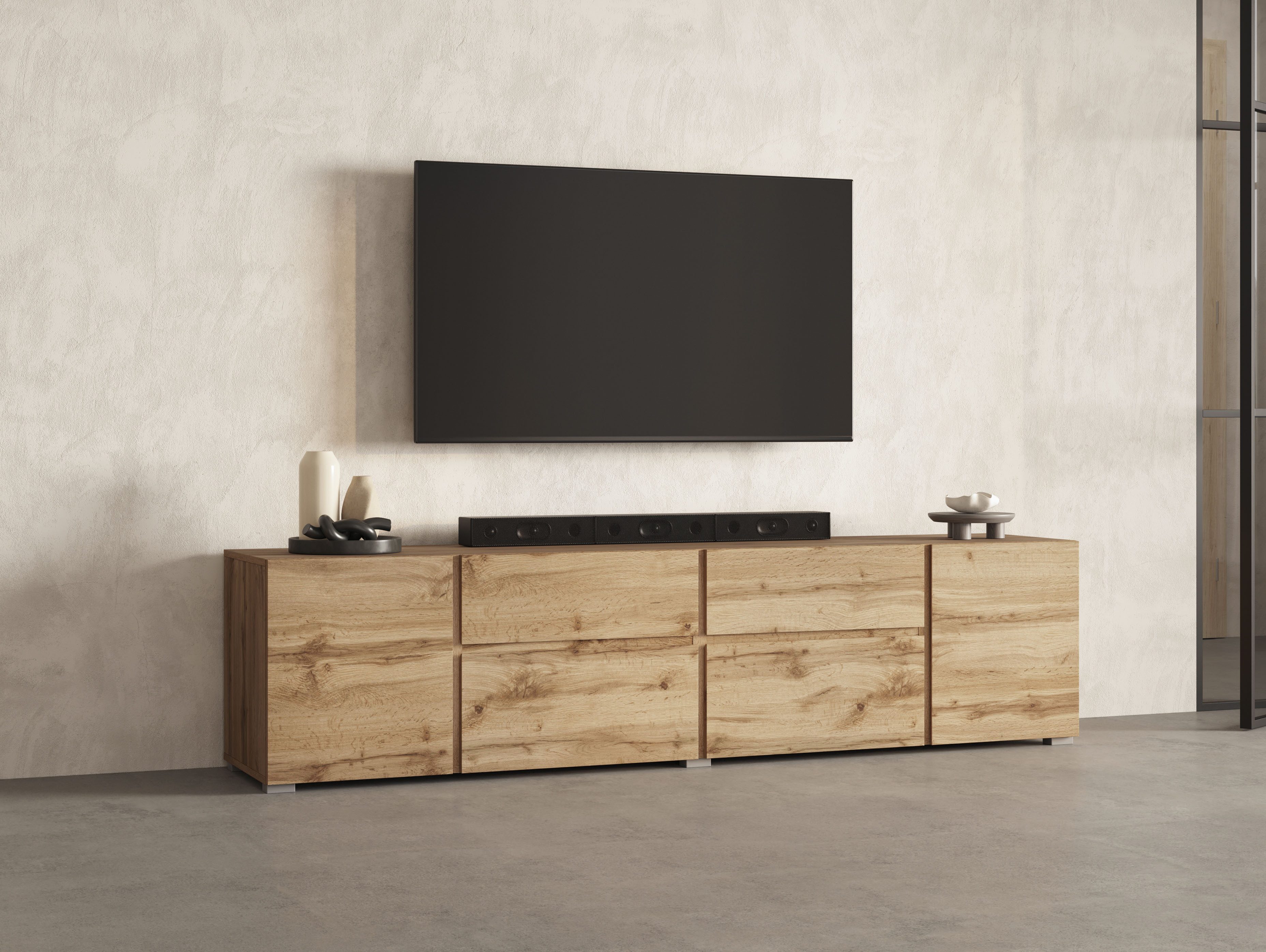 Macht dein Wohnzimmer komplett: das Lowboard »Metric,Breite 195cm, grifflose 2Klappen/2Schubkästen/2Tür« von INOSIGN!