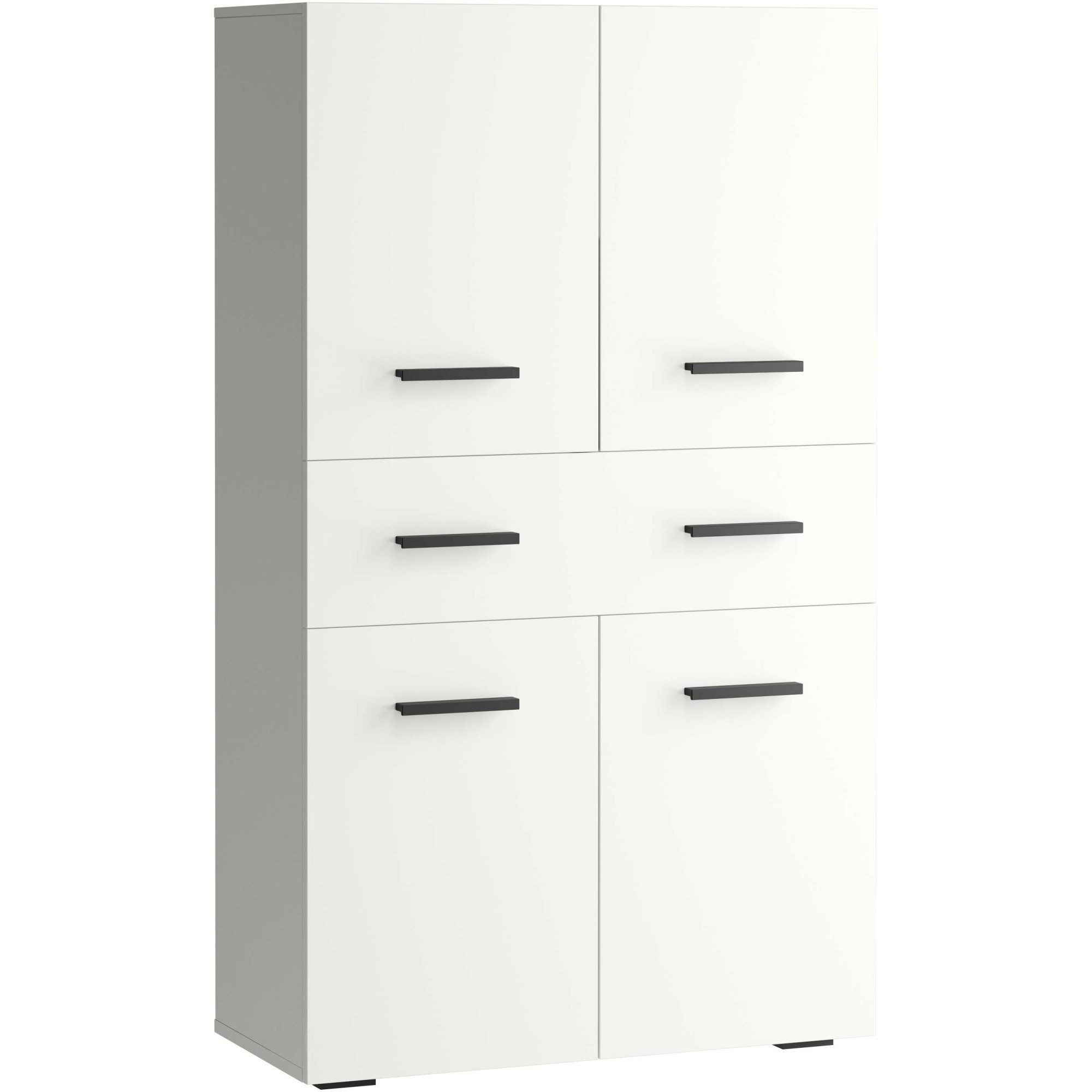 Der Schrank besteht zu einem Großteil aus stabiler Spanplatte und überzeugt dadurch mit solider Robustheit. Die praktischen Bügelgriffe aus Metall sind stabil und nutzen sich daher nicht so schnell ab. Belastbar ist dein neues Möbelstück mit bis zu 40 Kilogramm.