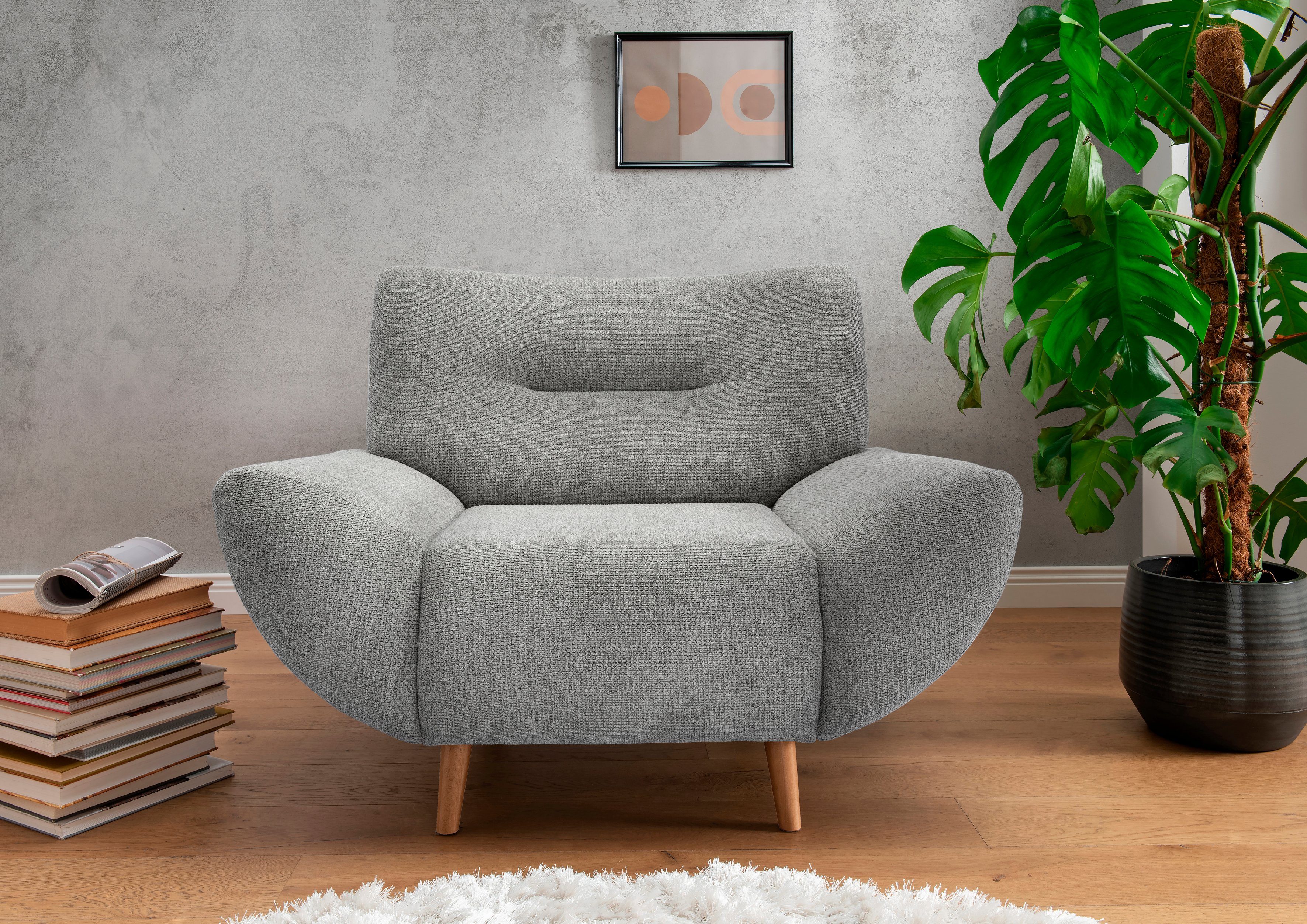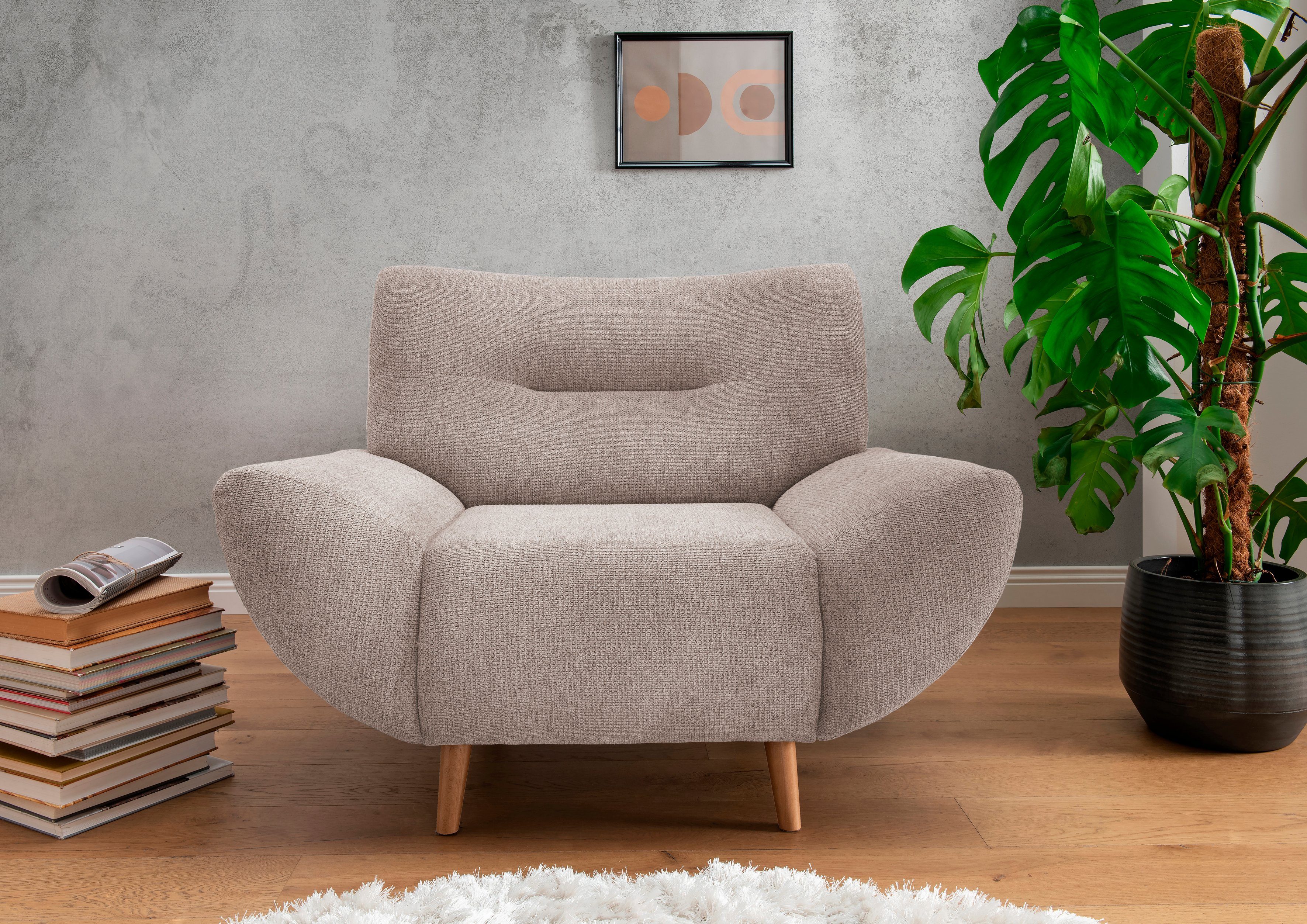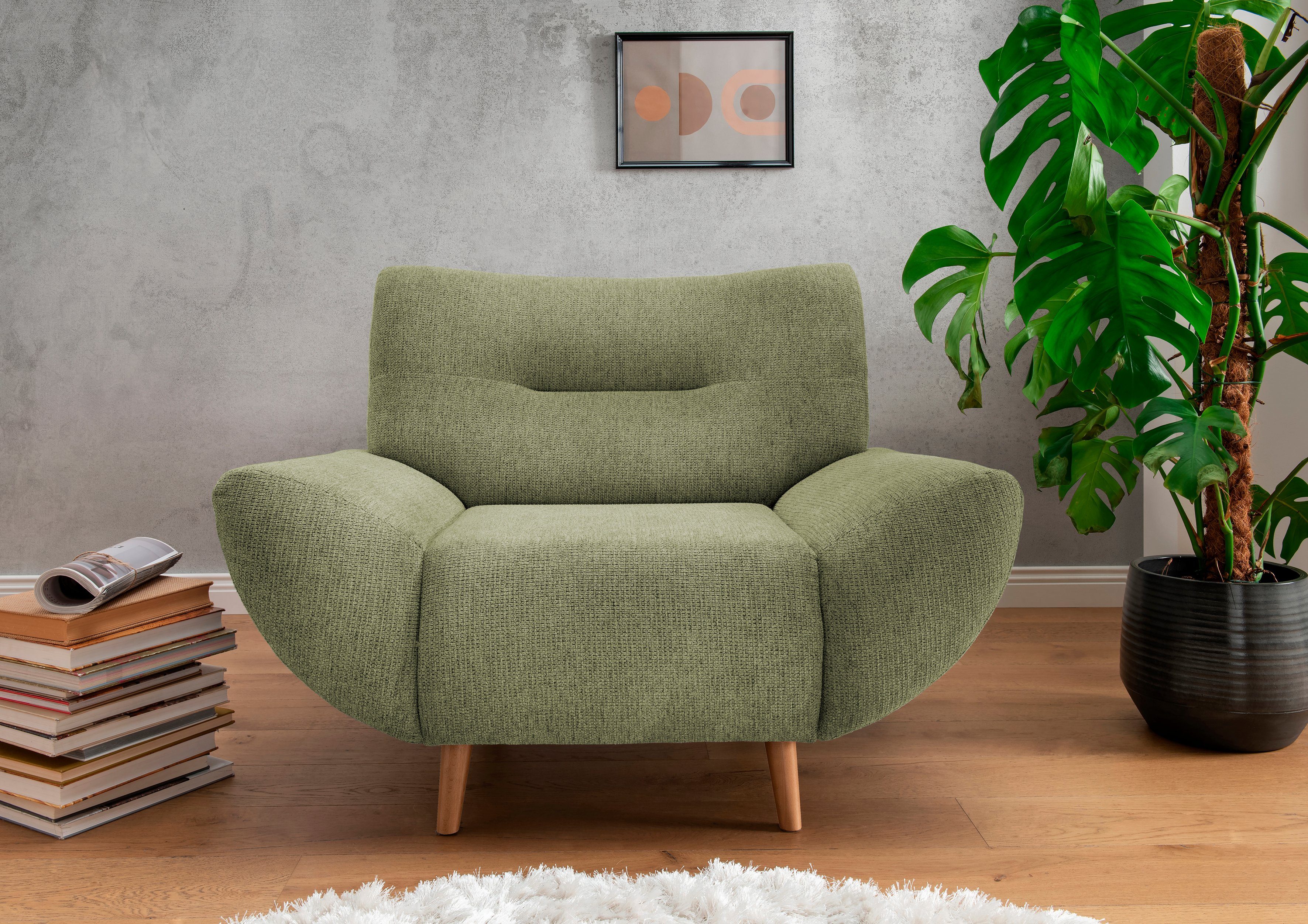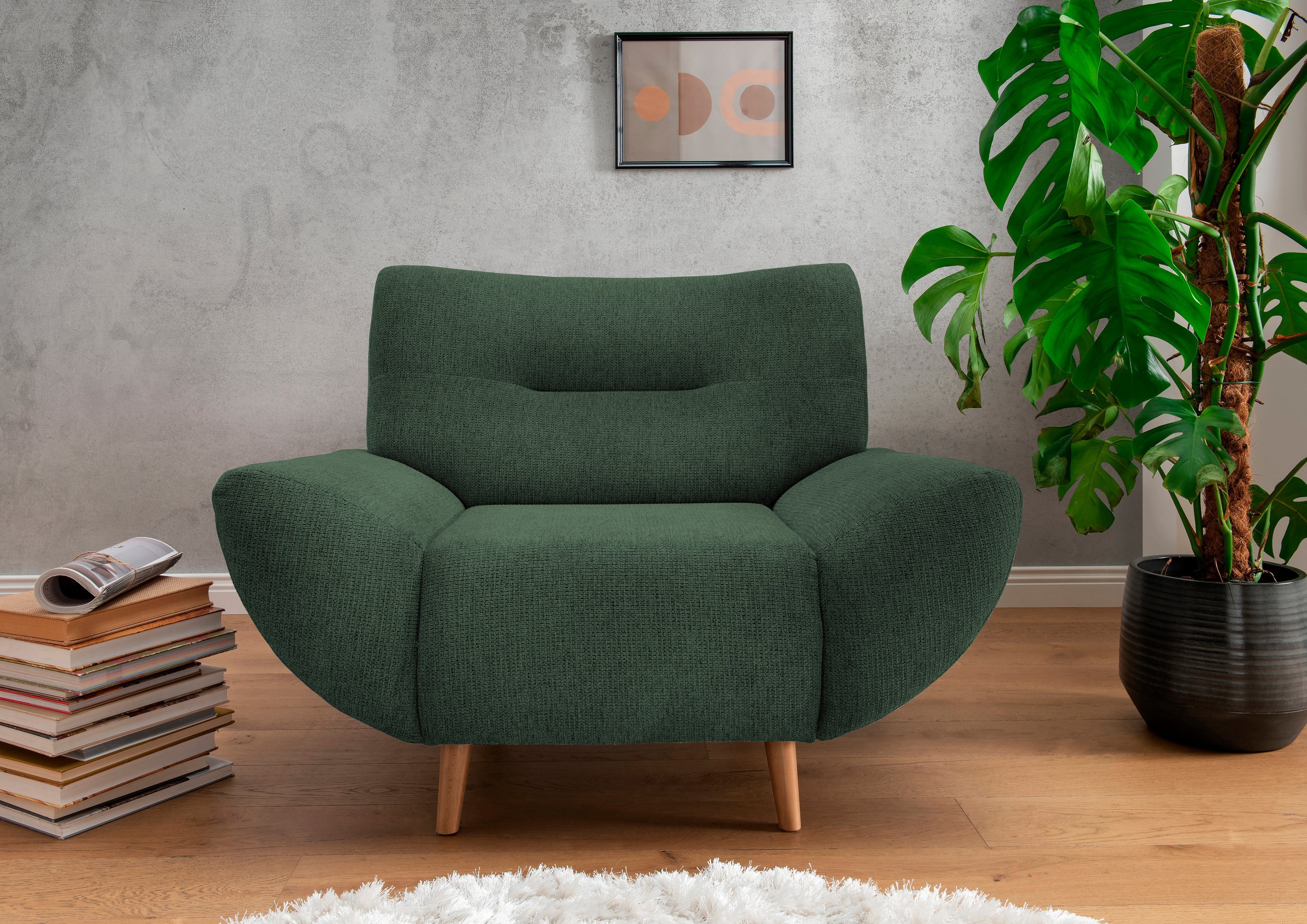 Durch die hochwertige Wellenunterfederung wird die Sitzfläche des Sessels »Drago« von INOSIGN gut gefedert und bleibt dauerhaft elastisch. Die maximale Belastbarkeit liegt bei einem Gewicht von 120 Kilogramm. Die individuelle Maserung macht die eichefarbenen Füße aus Holz unverwechselbar.