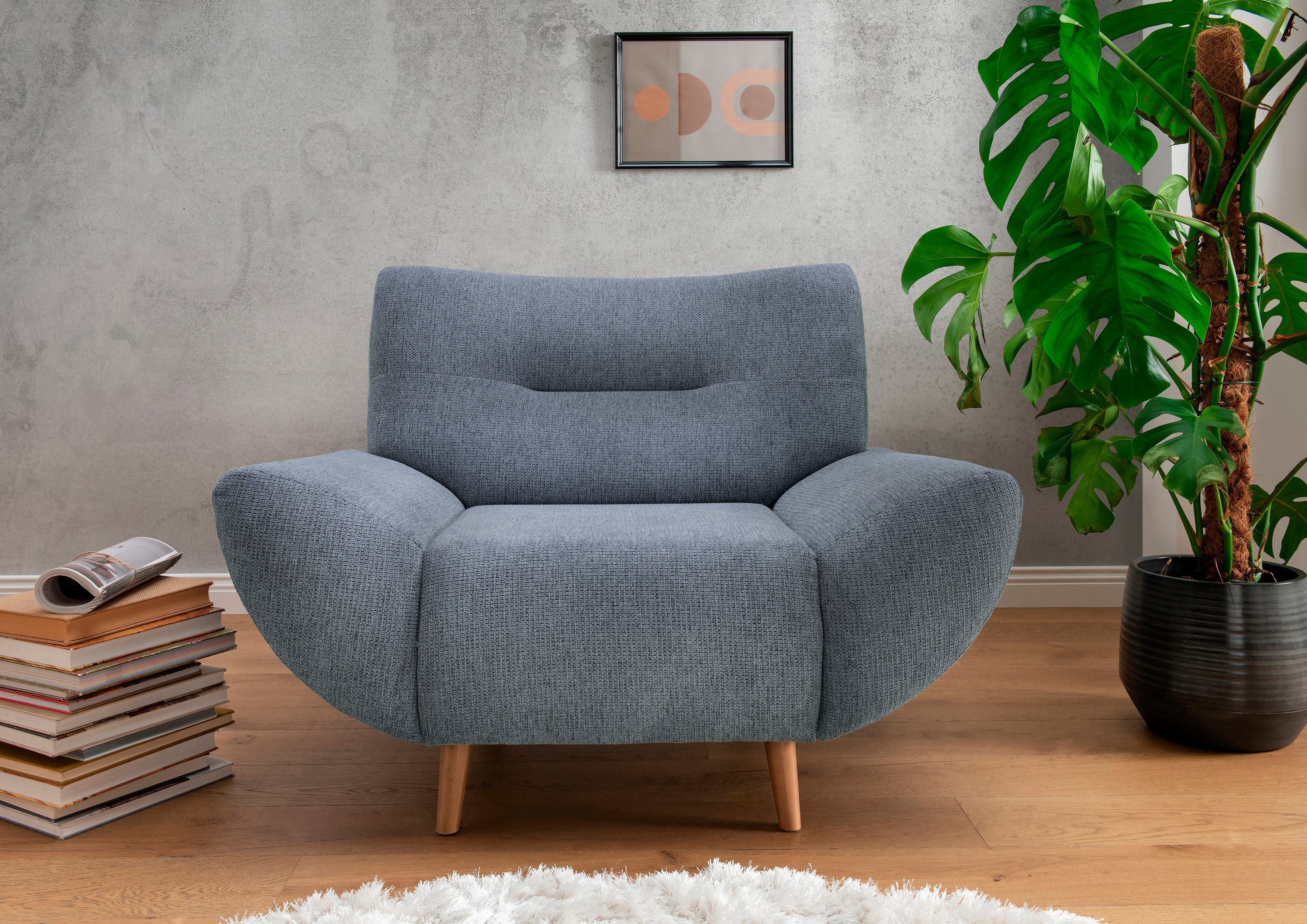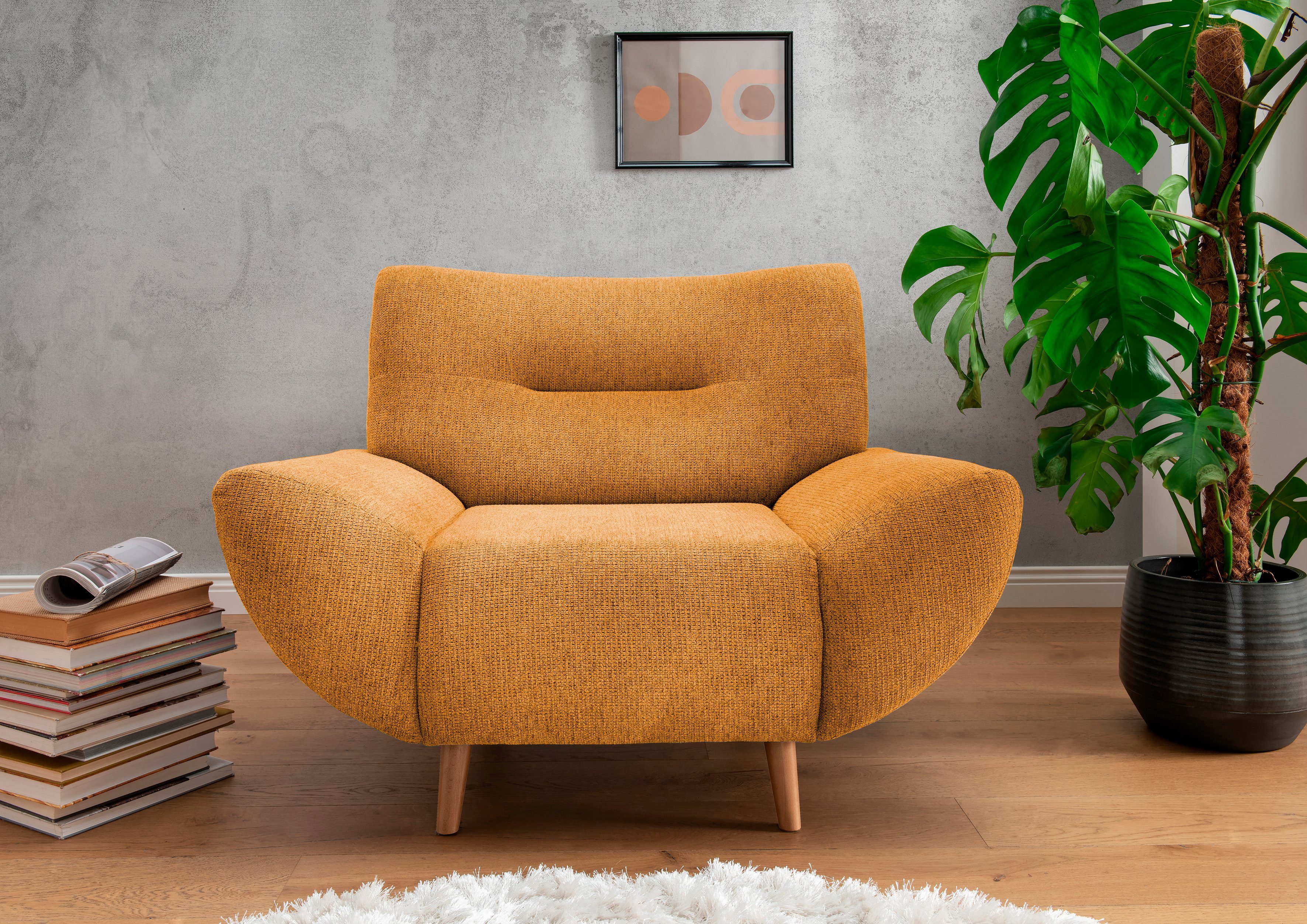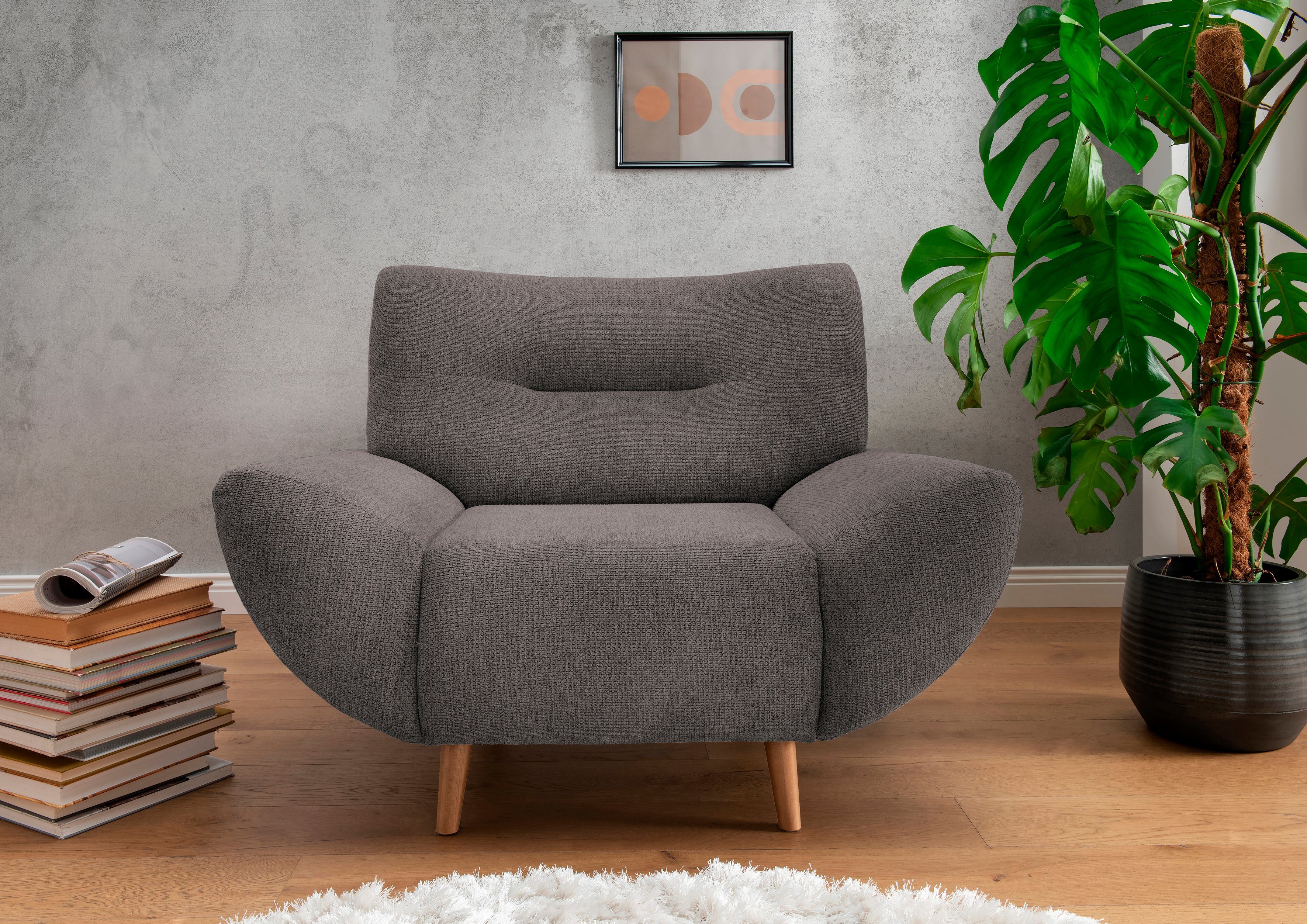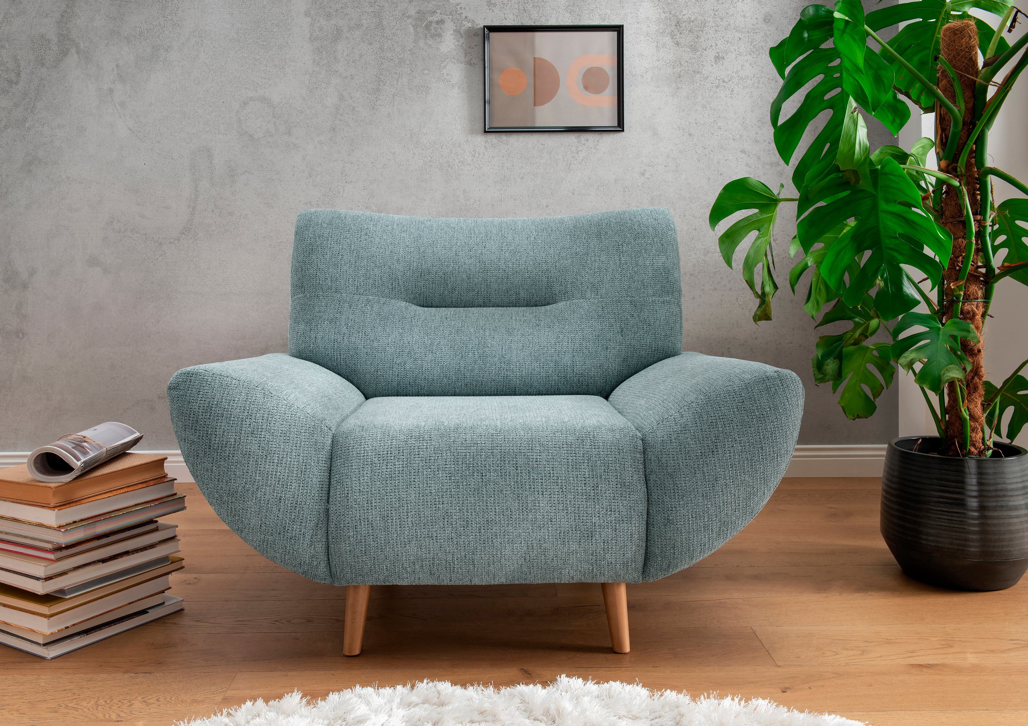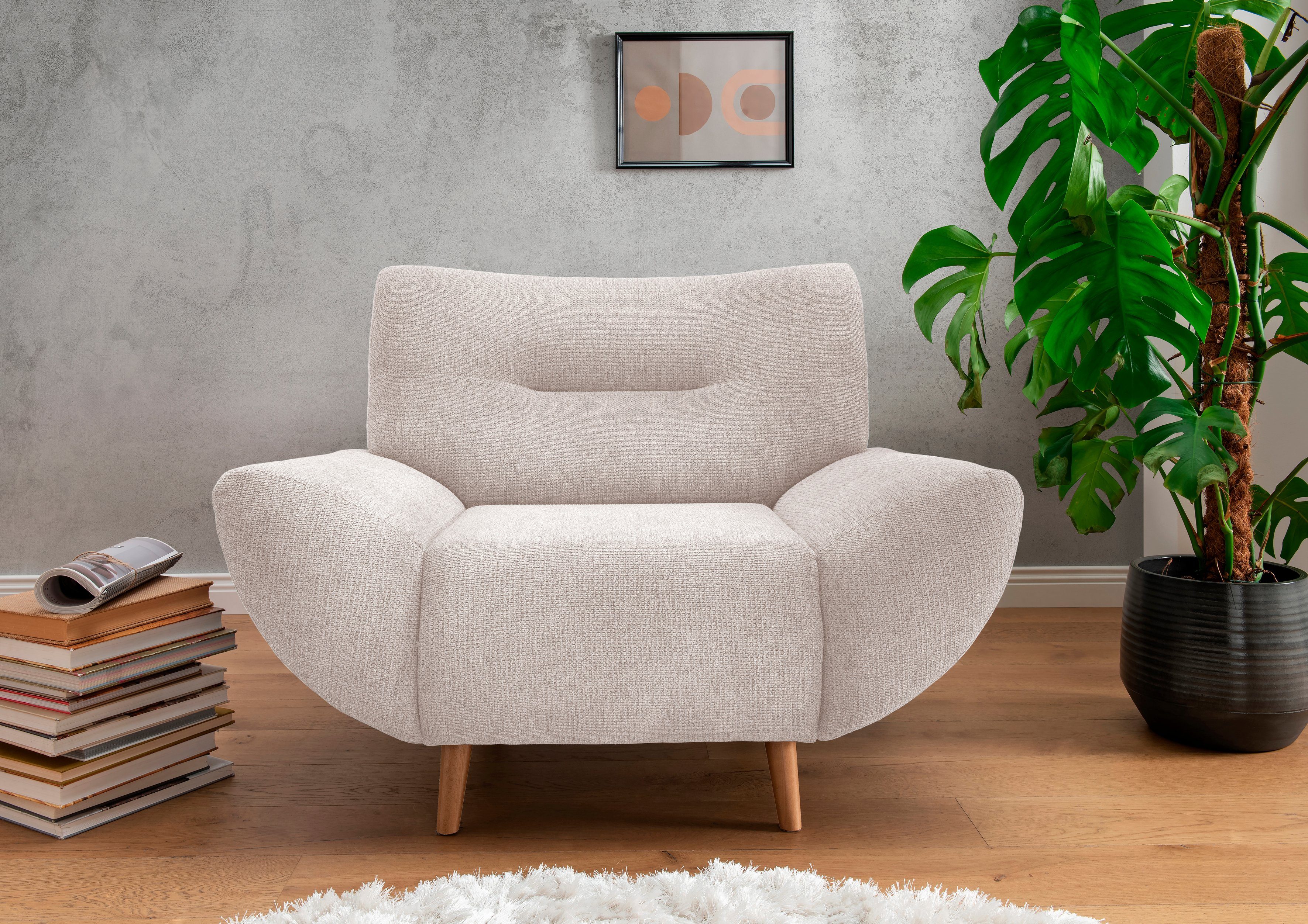 Durch die hochwertige Wellenunterfederung wird die Sitzfläche des Sessels »Drago« von INOSIGN gut gefedert und bleibt dauerhaft elastisch. Die maximale Belastbarkeit liegt bei einem Gewicht von 120 Kilogramm. Die individuelle Maserung macht die eichefarbenen Füße aus Holz unverwechselbar.