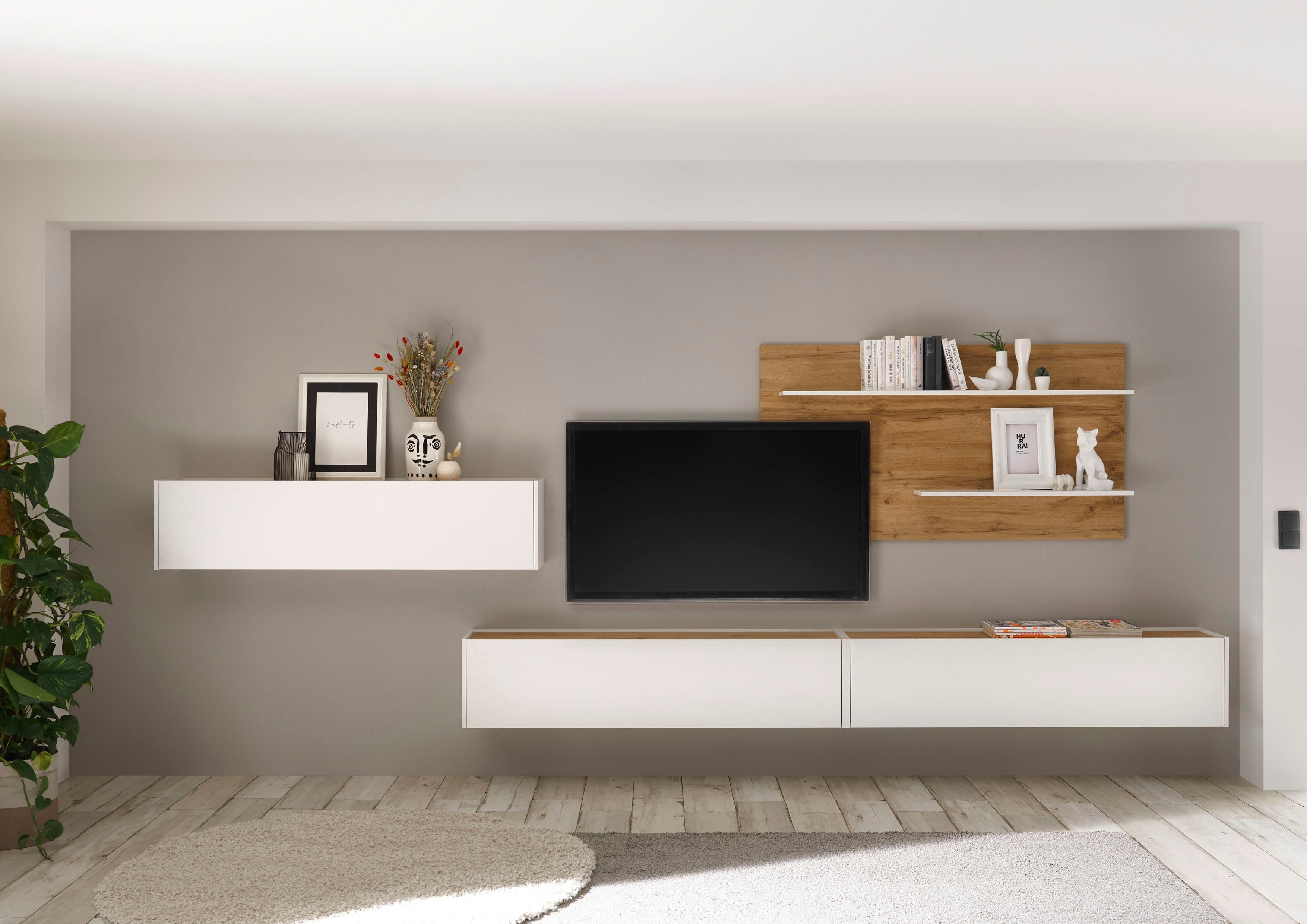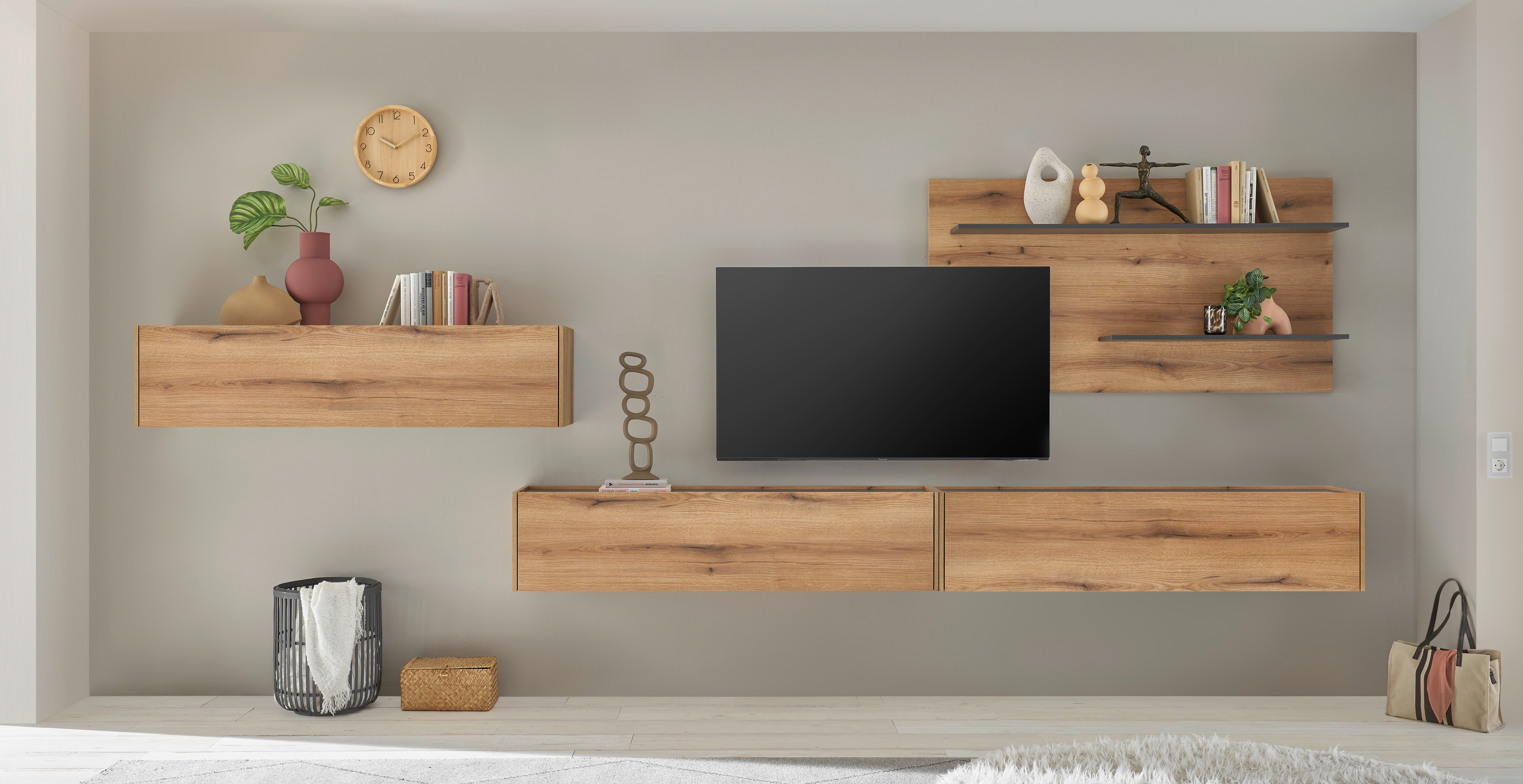 Set beinhaltet | 3 Hängeschränke, 1 Wandboard |