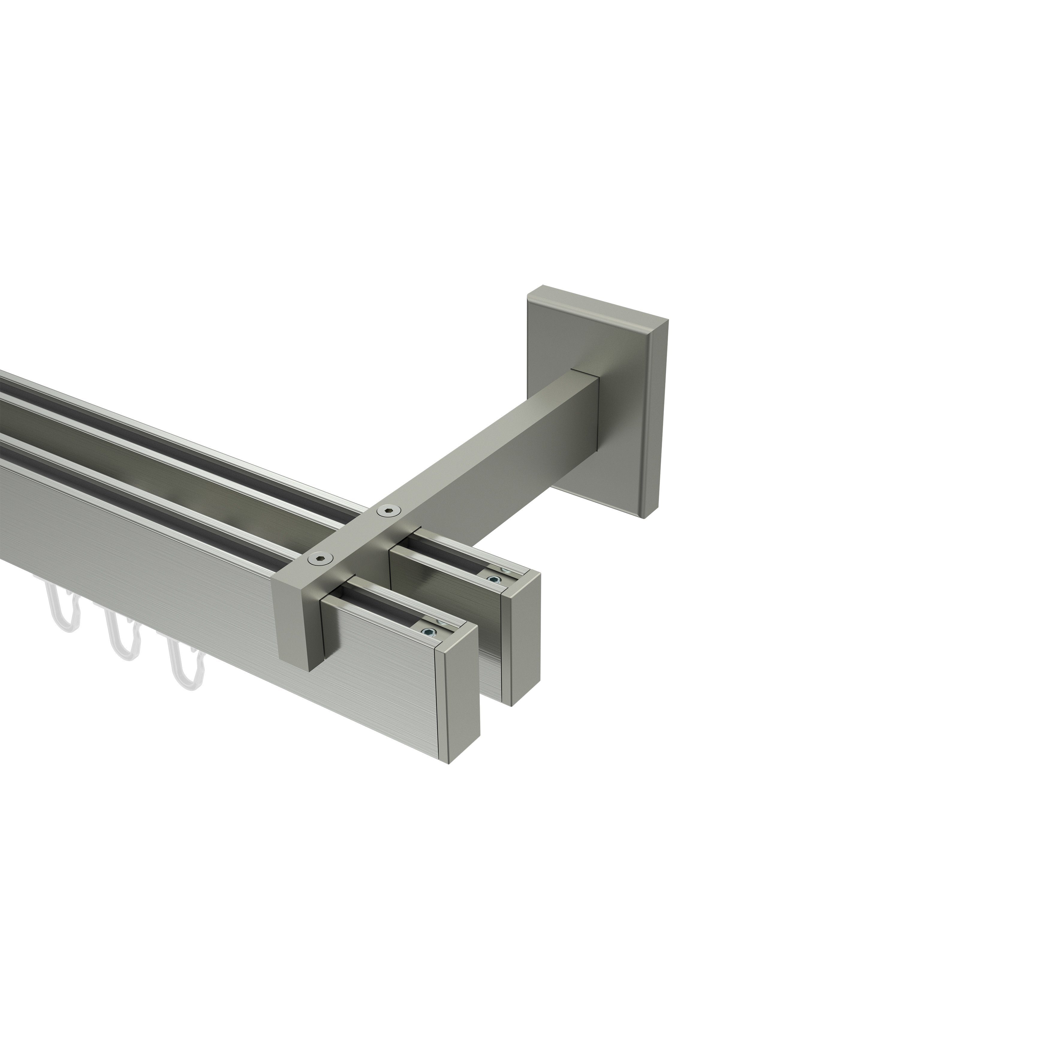 Diese kantige Innenlauf-Gardinenstange in Edelstahl-Optik bringt den Trend der schlichten Form in die Fensterdekoration ein. Die Innenlaufstangen des Modells Smartline Paxo in Doppellauf-Ausführung bestehen aus Aluminium und Metall, wobei das Profil aus Aluminium und die Zubehörteile wie Träger und Endstücke aus Metall hergestellt sind. Geliefert wird diese Innenlaufstange als Set, d. h. montagefertig inkl. Halter, Endstücke und Befestigungsmaterial. Die Gardinen bzw. Vorhänge werden mit dessen Kräusel- oder Gardinenband an den Faltengleitern befestigt. Material: Aluminium (Innenlaufprofil) / Metall (Zubehör) Farbe: Edelstahl-Optik Ausführung: doppelläufig Profil (B x H): 14 x 35 mm Träger (Halterungen): offene Doppelträger mit ca. 10,5 und 13,5 cm Wandabstand (Trägerabstand) Befestigungsmöglichkeit(en): Wandbefestigung Lieferumfang: 2 Stk. Innenlaufprofile (bis 200 cm Длина = ungeteilt, größer als 200 cm bis 280 cm = geteilt in 2 Teilstücke pro Lauf, 300 cm = geteilt in 3 Teilstücke pro Lauf, größer als 300 cm bis 400 cm = geteilt in 2 Teilstücke pro Lauf, größer als 400 cm bis 600 cm = geteilt in 3 Teilstücke pro Lauf), 2 Stk. Endstücke für dieses Modell (vordere Stange), 2 Stk. Endstücke (hintere Stange), 2 Stk. Träger (größer als 200 cm bis 280 cm = 3 Stk. Träger, 300 cm = 4 Stk. Träger, größer als 300 cm bis 400 cm = 3 Stk. Träger, größer als 400 cm bis 600 cm = 4 Stk. Träger), Faltengleiter mit Faltenlegehaken (1 Stk. Faltengleiter mit Faltenlegehaken pro 10 cm Stangenlänge je Lauf) u. Befestigungsmaterial. Zwischengrößen, Überlängen und Spezialanfertigungen auf Anfrage. Die oben angegebenen Größen beziehen sich auf die reine Stangenlänge zzgl. der Endstücke. Herstellerhinweis, Empfehlung und Farbhinweis: Abhängig von Verwendung kann es unter Umständen möglich sein, dass unabhängig vom Lieferumfang und Размер ein zusätzlicher Zwischenträger erforderlich sein kann. Die Farbwiedergabe der Abbildung bzw. des Bildmaterials kann eventuell von den Original Farben abweichen. Dieses könnte unter anderem von den Einstellungen Ihrer Grafikkarte und Ihres Monitors abhängig sein.