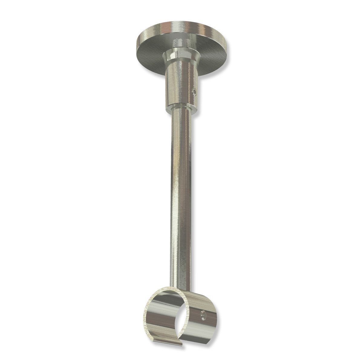 Mit diesem einläufigen Deckenträger kann man eine Innenlaufstange oder Gardinenstange 20 mm Ø einfach und stabil unter der Decke befestigen. Dieser einläufige Gardinenstangen-Halter in Edelstahl-Optik hat eine Öffnung, welche nach unten gerichtet ist, sodass die Faltengleiter problemlos durch den Deckenträger geschoben werden können. Das eingesetzte Innenlauprofil oder Gardinenstangenrohr in 20 mm Ø wird einfach mit einer kleinen Madenschraube fixiert. Geliefert wird dieser Deckenträger für Gardinenstangen inkl. des Befestigungsmaterials. Material: Metall Farbe: Edelstahl-Optik Ausführung: einläufig für Stangendurchmesser: 20 mm Deckenabstand: ca. 13 cm (Decke bis Mitte Rohr) Trägerart: offen Befestigungsmöglichkeit(en): Deckenbefestigung Lieferumfang: Deckenträger inkl. Befestigungsmaterial. Herstellerhinweis, Empfehlung und Farbhinweis: Die erforderliche Anzahl der Träger für die Befestigung einer Gardinenstange ist von dessen Длина und möglicher Anzahl von Teilungen abhängig. Die Farbwiedergabe der Abbildung bzw. Bildmaterials können, kann eventuell von den Originalfarben abweichen. Dieses könnte unter anderem von den Einstellungen Ihrer Grafikkarte und Ihres Monitors abhängig sein.