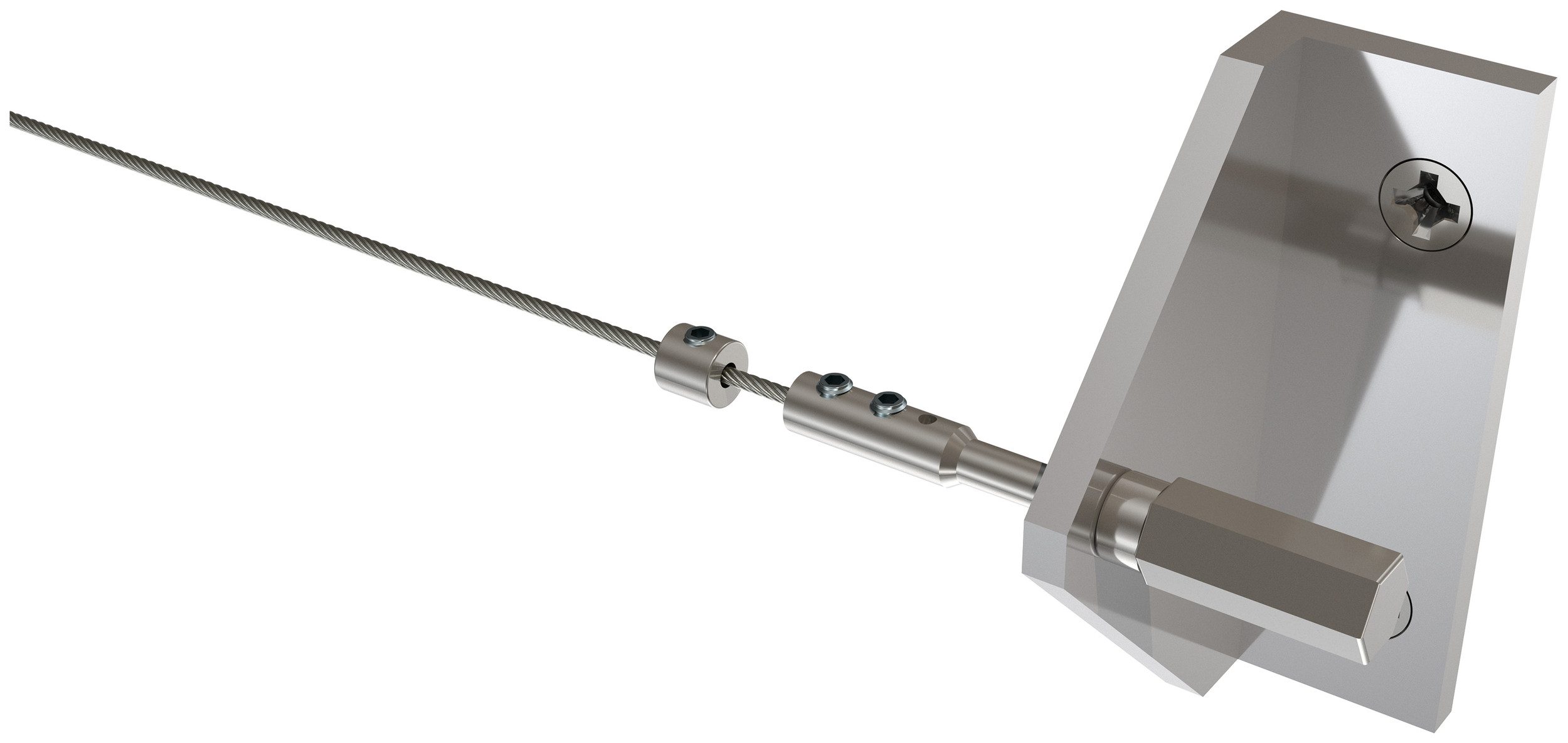 Informationen zu Seilspanngarnitur Modo Chrom mit Stahlseil 2 mm Ø in 500 cm: Stangendurchmesser: 2 mm Farbe: Chrom Material: Metall