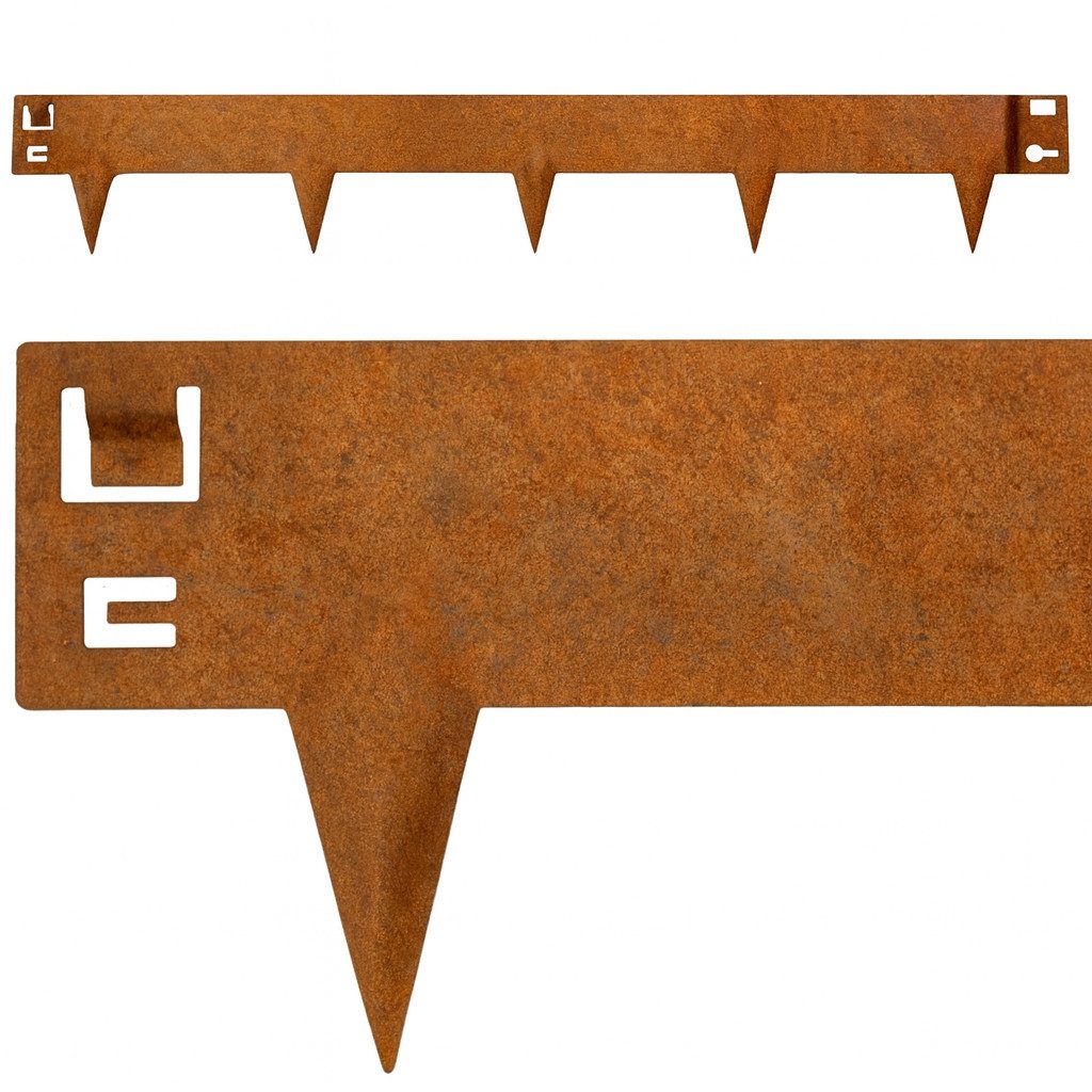 Die Rasenkanten aus Cortenstahl sind robust, witterungsbeständig und entwickeln eine dekorative Rostpatina, die zugleich als Schutz dient. Das Set enthält sechs Elemente à 105 × 16 cm mit über 6 m Gesamtlänge – ideal zur klaren Abgrenzung von Rasen, Beeten und Wegen. Einfach zu verlegen, sorgen sie für ein gepflegtes Gartenbild und lassen sich flexibel zu geraden Linien, Kurven oder runden Formen kombinieren.