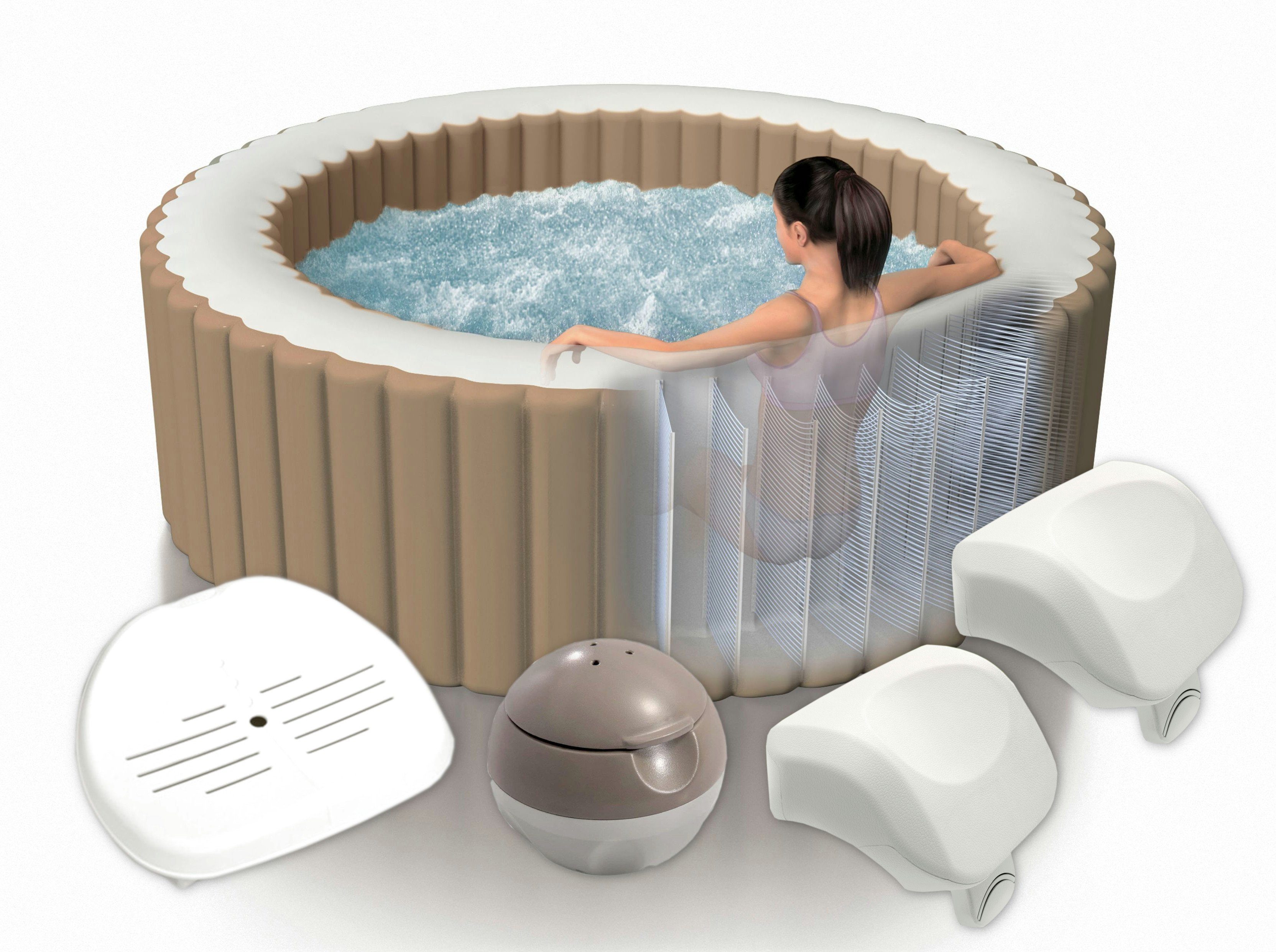 INTEX PureSpa Bubble Thearapy Spa; aufblasbares Spa; PureSpa bietet Ihnen Entspannung auf Knopfdruck. Das äußerst benutzerfreundliche Touch-Bedienpanel aktiviert die leistungsstarken Luftdüsen, für eine entspannende und wohltuende Massage. Das Heizsystem passt sich automatisch den von Ihnen eingestellten Temperatur an, so dass Ihnen ein stressfreies Spa Erlebnis geboten wird. PureSpa ist einfach zu warten mit austauschbaren Filterkartuschen für einen dauerhaften Genuss für bis zu 4 Personen.