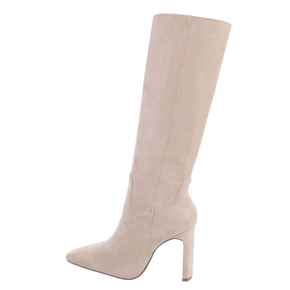 Besondere Merkmale | Blockabsatz High-Heel Stiefel in Beige |