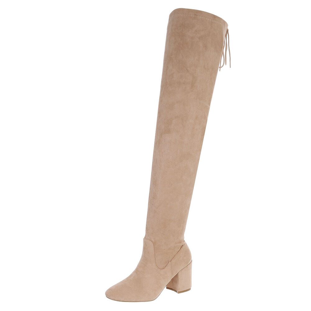 Besondere Merkmale | Blockabsatz High-Heel Stiefel in Beige |