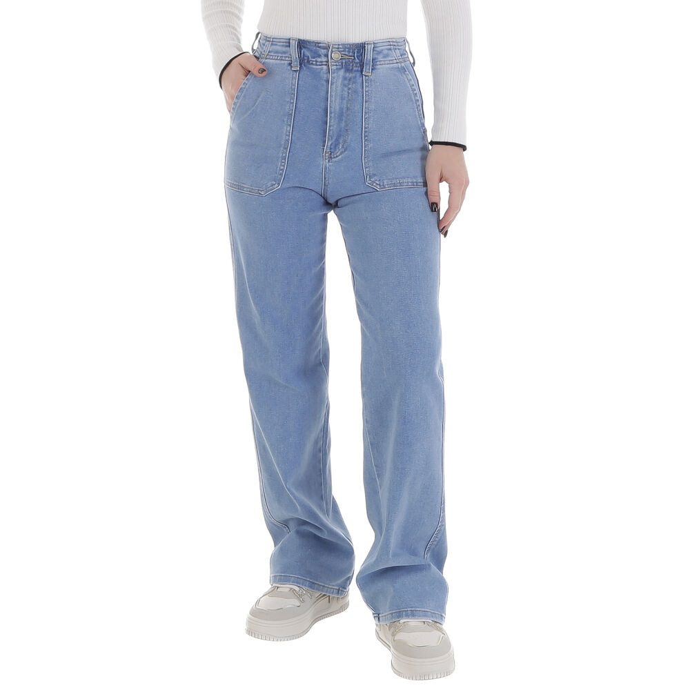 Besondere Merkmale | Used-Look Stretch High Waist Jeans in Blau |