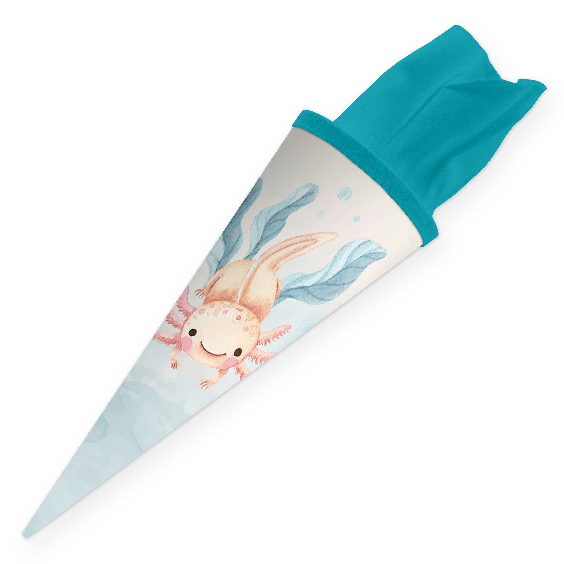 Diese bezaubernde, 35 cm kleine Schultüte ist die perfekte Überraschung für das jüngere Geschwisterkind zum Schulstart des großen Bruders oder der großen Schwester. Im fröhlichen Axolotl-Design gehalten, begeistert sie mit ihren freundlichen Farben und dem niedlichen Unterwasserbewohner.
