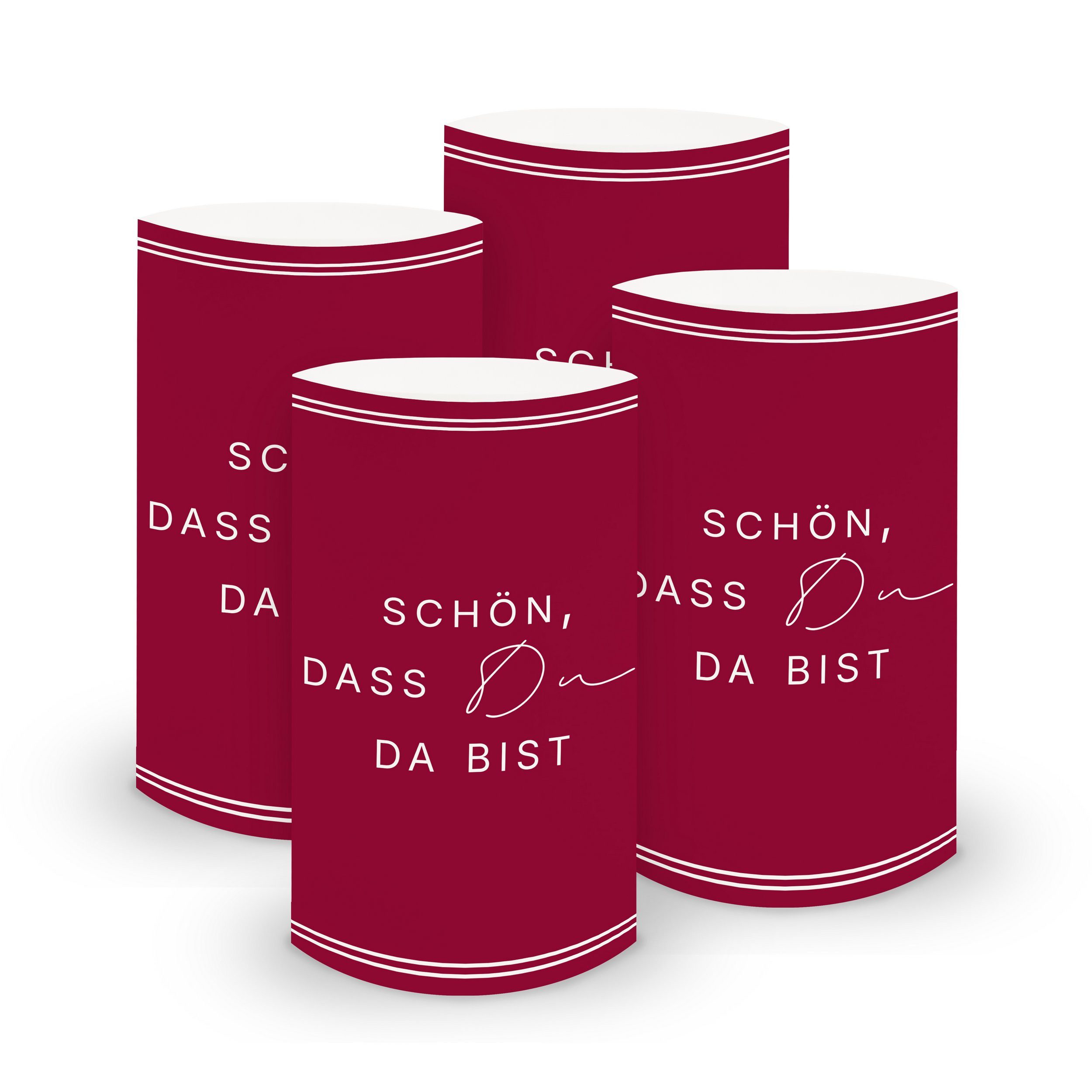 • ITENGA 6x Windlichter Schön dass du da bist V3 bordeaux rot