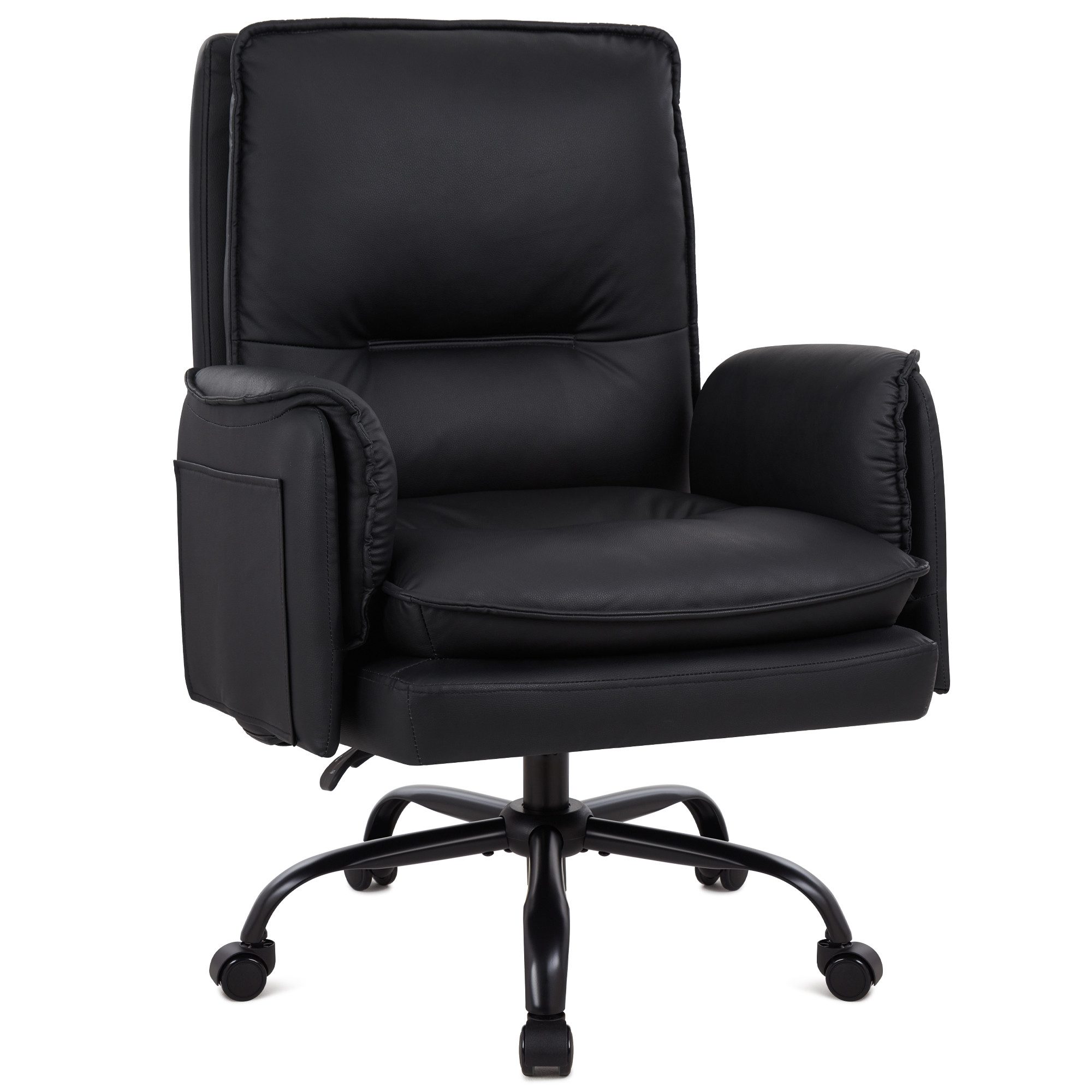 Der Drehstuhl ist so konzipiert, dass er ein Sofa imitiert und die Bequemlichkeit eines Sofas mit der Flexibilität eines Bürostuhls kombiniert, so dass Sie im Büro genauso bequem sitzen können wie zu Hause. Das breitere, doppellagige Kissen macht das Sitzen noch bequemer. Der Stuhl besteht aus einer hochwertigen Gasdruckfeder und einem Untergestell mit Rädern, das in der Höhe verstellt, gedreht und die Rückenlehne gekippt werden kann, um Ihnen mehr Freiheit beim Sitzen zu geben.