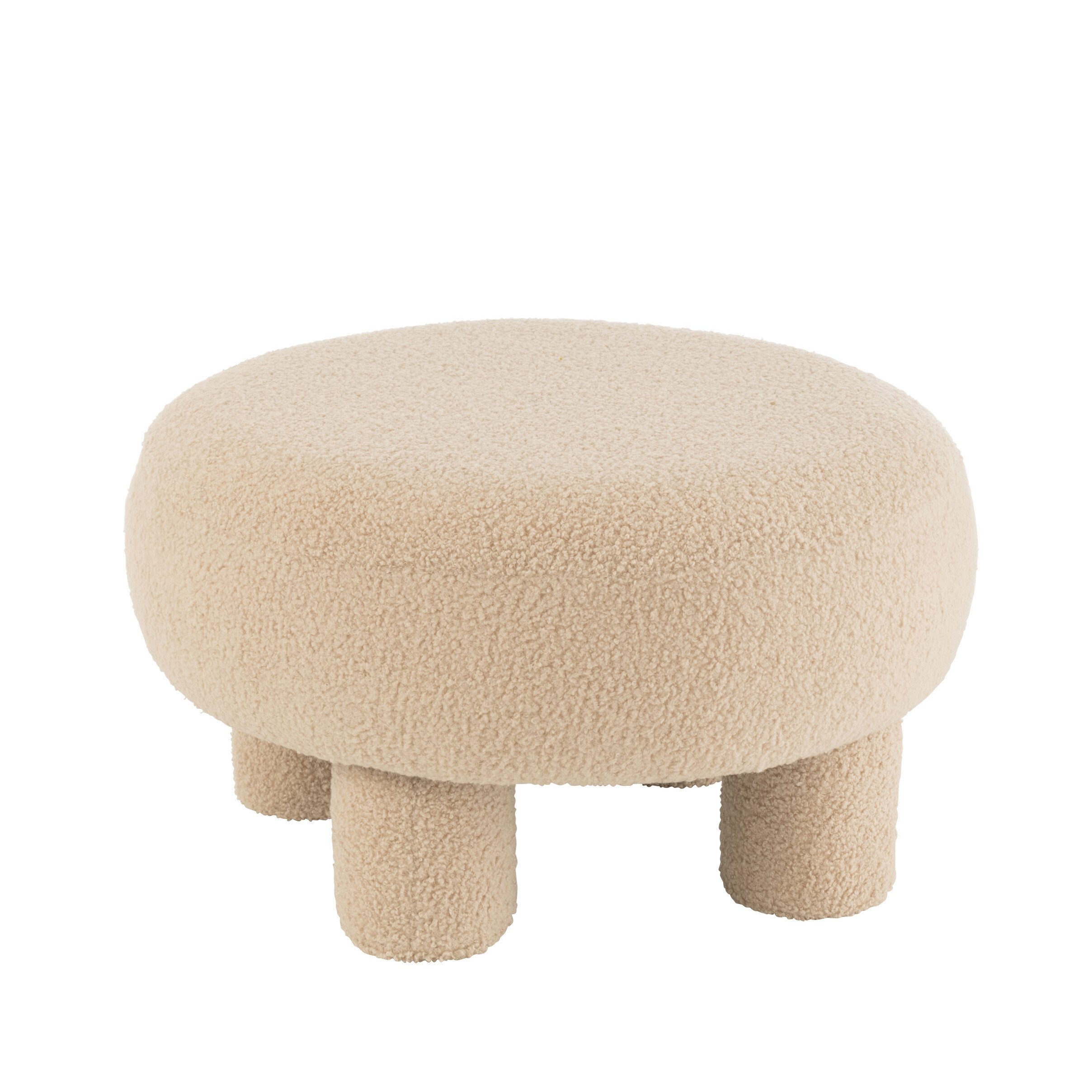 Design: Runde Form mit flauschigem Bouclé-Bezug, Beine ebenfalls im Teddy-Stoff - Stil: Modern, skandinavisch, gemütlich