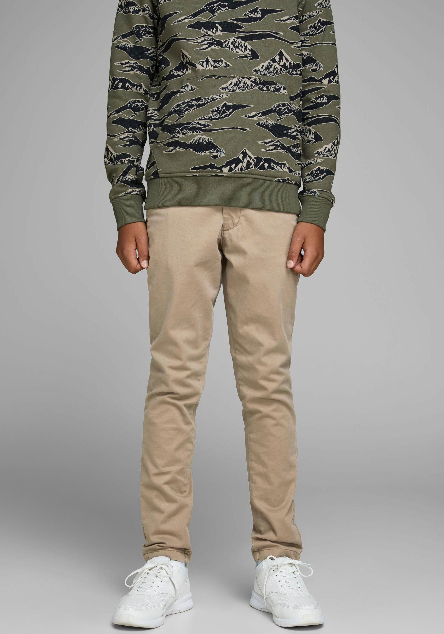 Lässig, sportlich und modisch ganz weit vorne ist die Chinos »JPSTMARCO bequem, elastisch, pflegeleicht« von Jack & Jones Junior!