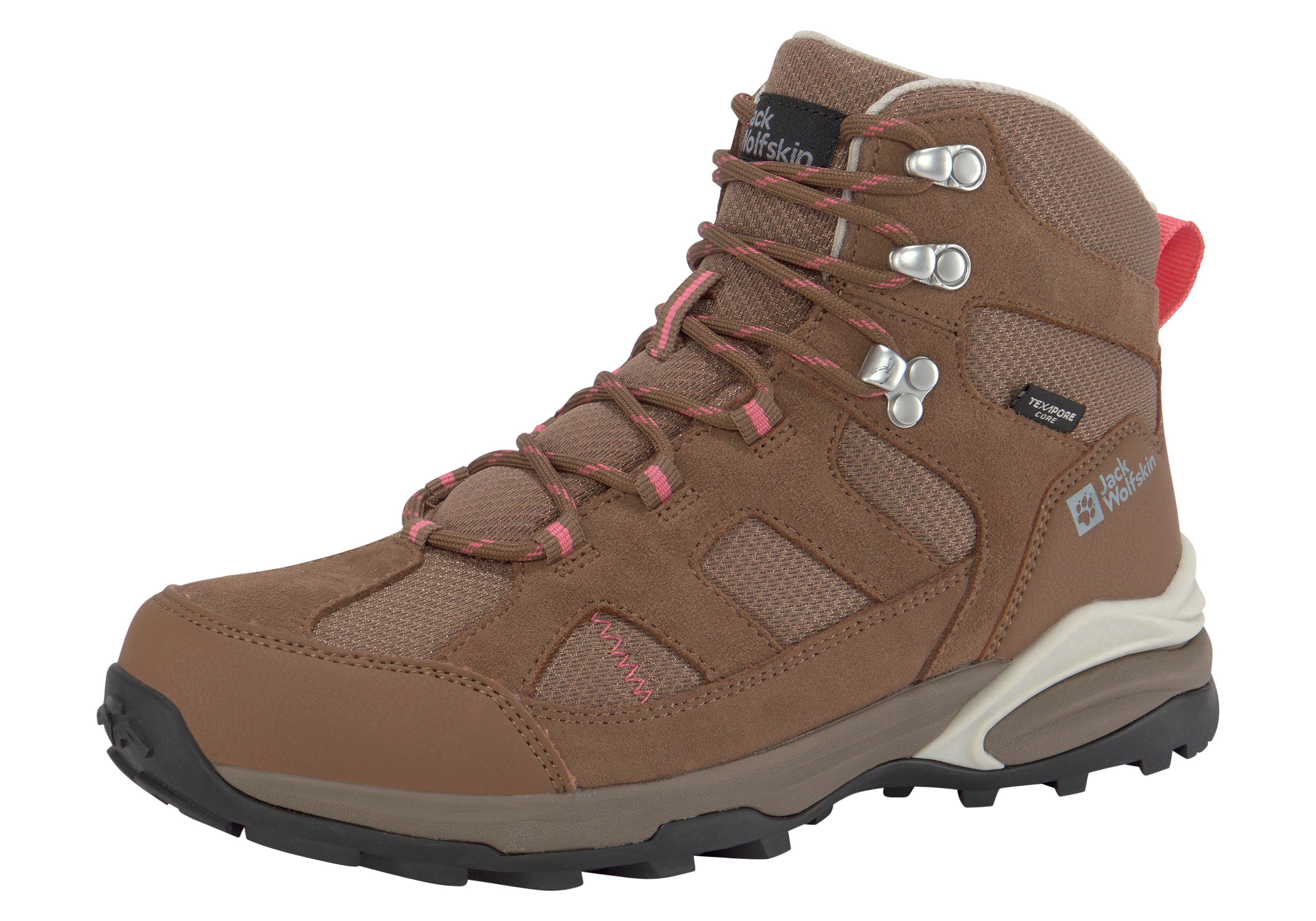 Die Wanderschuhe »TRAIL HIKER TEXAPORE MID W« von Jack Wolfskin mit der TEXAPORE-Membran sorgen für warme und trockene Füße auch in der kalten Jahreszeit. Der hohe Schaft bedeckt deine Knöchel und schützt dich vor allem auf unbefestigten Wegen gut vor Verletzungen durch Umknicken. Mit der Schnürung kannst du den Schuh einfach und individuell auf dich und dein Vorhaben anpassen. Er gibt deinem Fuß beispielsweise beim Wandern einen guten Halt.