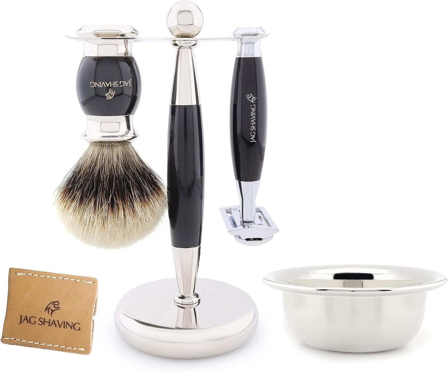 JAG SHAVING Rasierpinsel-Set Rasierpinsel aus Kunsthaar mit zweischneidigem Rasierhobel, Rasierset, Set, 5 tlg., Rasierset mit zusätzlichem Rasierzubehör für eine klassische Rasur., beste Erfahrung beim manuellen Speichern
