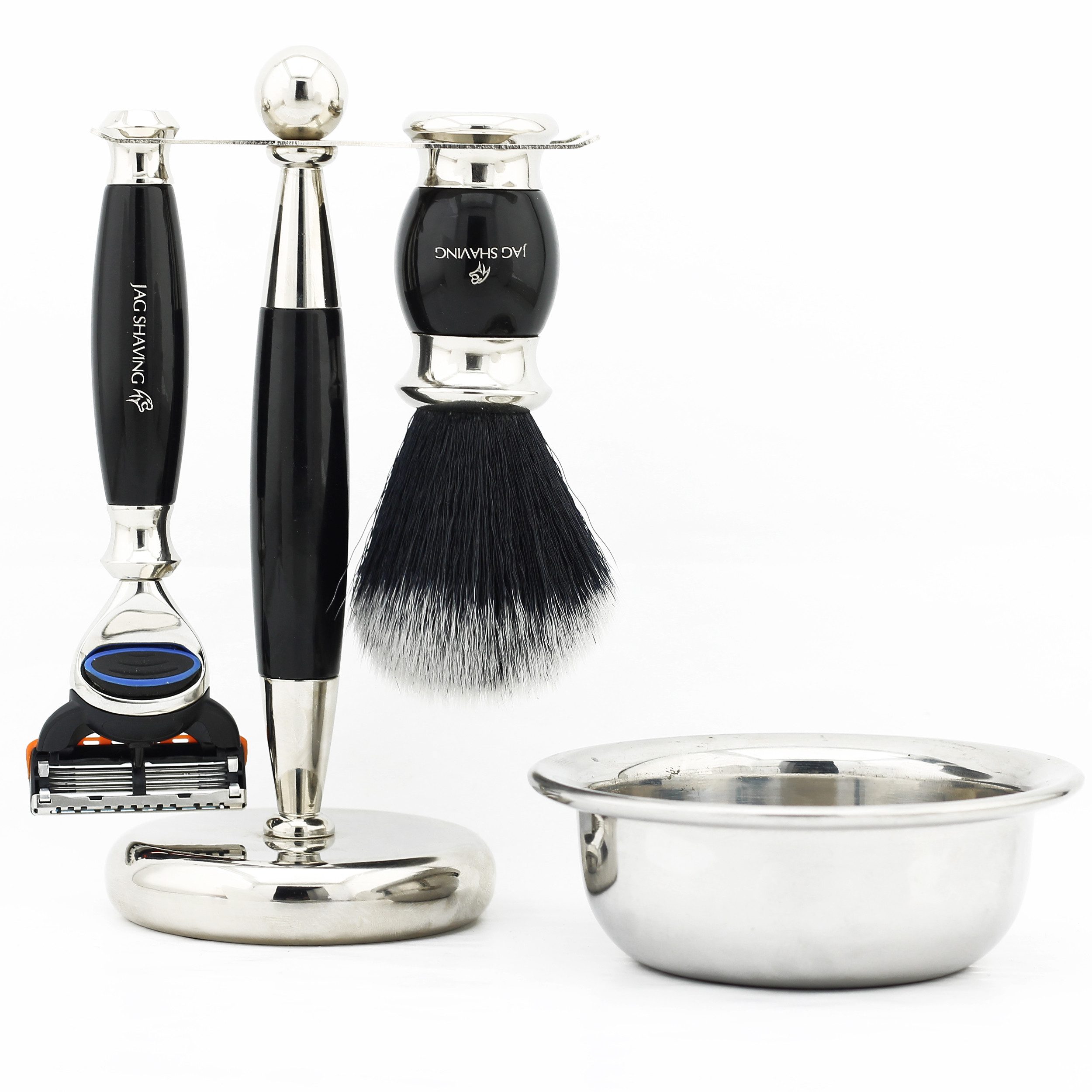 Ausstattung | synthetischer Rasierpinsel Gillette Fusion 5 Rasierer Doppelständer Rasierschale aus Edelstahl |