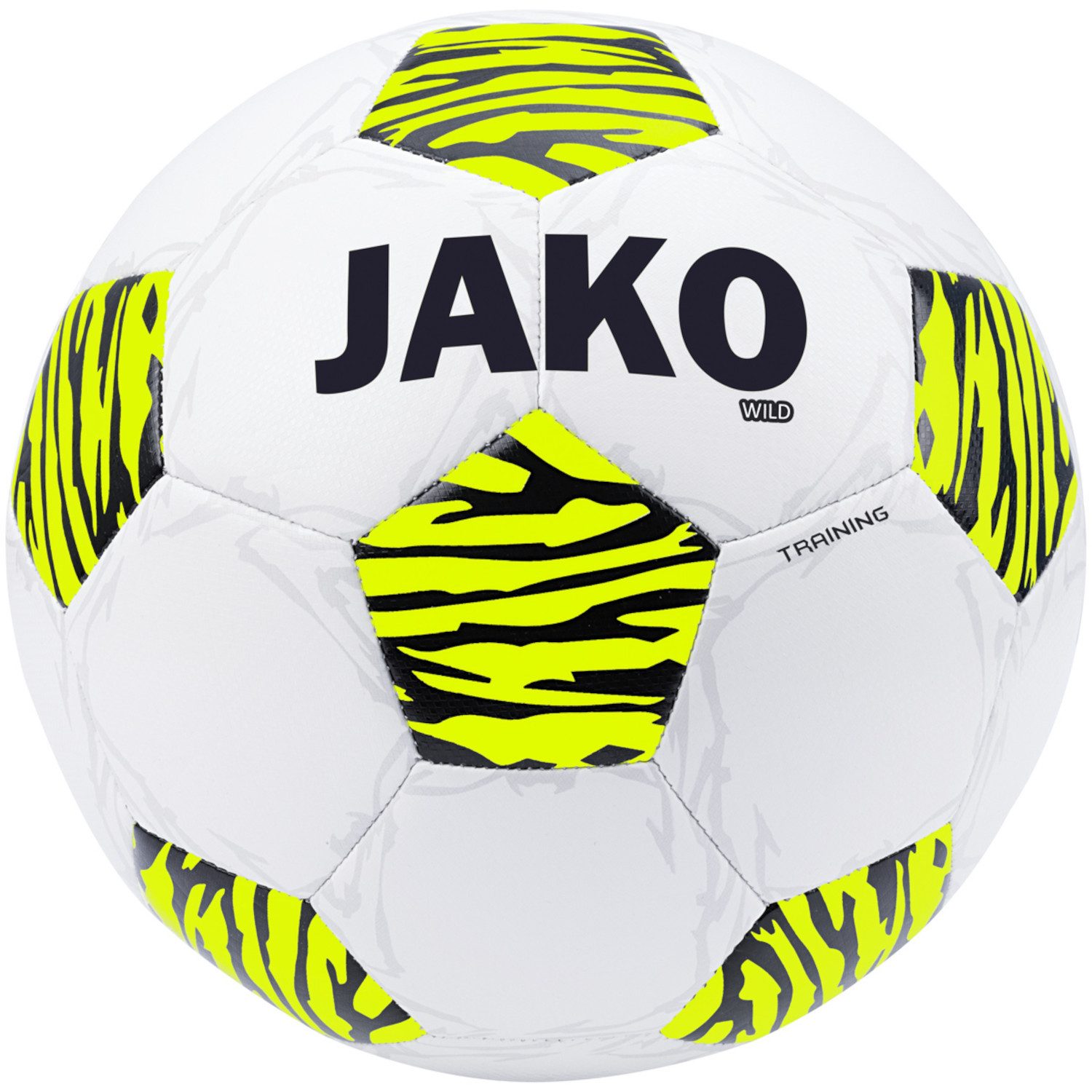 Jako Fussball Trainingsball Wild. Der Trainingsball Wild mit Animalprint-Design. Das Panel mit Animalprint macht diesen FIFA BASIC-zertifizierten Trainingsball nicht nur zu einem funktionalen Begleiter, sondern auch zu einem stylischen Accessoire für jede Trainingseinheit. Mit einer umwickelten Blase und 32 Panels steht der Trainingsball Wild für ausgezeichnete Formstabilität und Langlebigkeit. Maschinengenäht für höchste Präzision ist er der ideale Partner für intensive Trainingseinheiten. Als FIFA BASIC-zertifizierter Ball erfüllt er höchste Qualitätsstandards. Material: 100% Polyurethan.